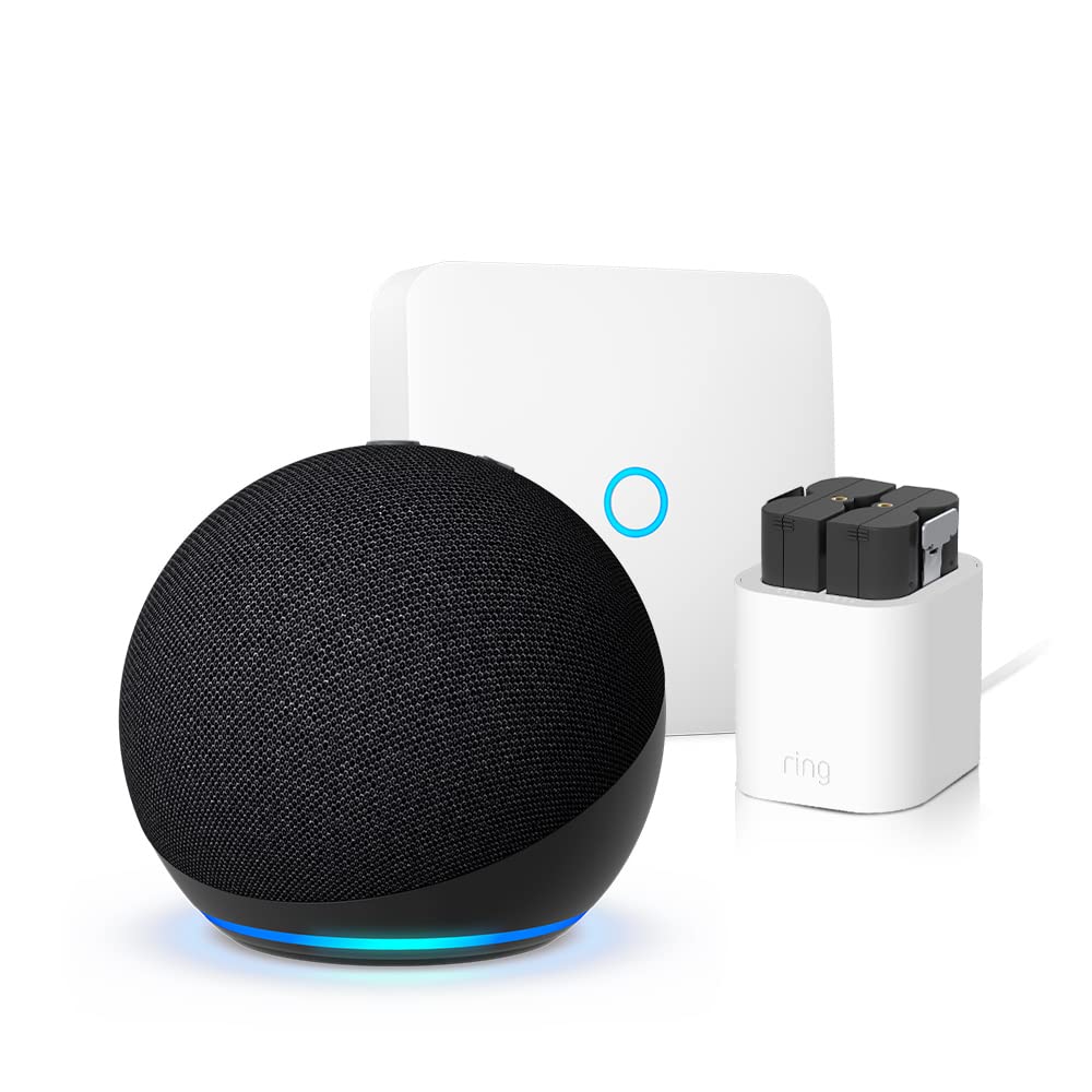 Ring Intercom + additional Quick Release Battery Pack + Charging Station by Amazon | Intercom upgrade, Two-Way Talk + All-new Echo Dot (5th generation) smart speaker with Alexa | Charcoal
