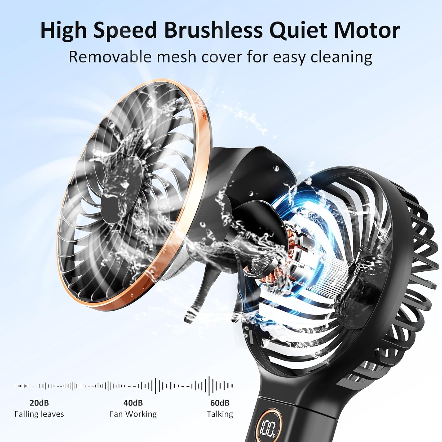 🧊Powerful Handheld Fan: Upgraded 7-blade fan with a powerful motor, 6 adjustable speeds, strong and quiet wind, and a compact body design that’s easy to carry. The large-capacity 4000mAh battery and two usage modes will keep you cool during the hot summer.