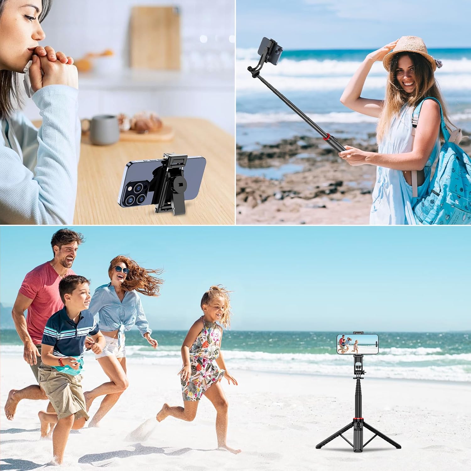 ✅【360° Rotation】Utilize the 360° rotation feature of this selfie stick tripod to provide you with the flexibility of the best viewing angle. You can adjust your phone vertically or horizontally and switch easily between landscape and portrait modes. in addition, the phone holder is wrapped with non-slip silicone pads to ensure that your phone stays firmly in place throughout the entire photo session.