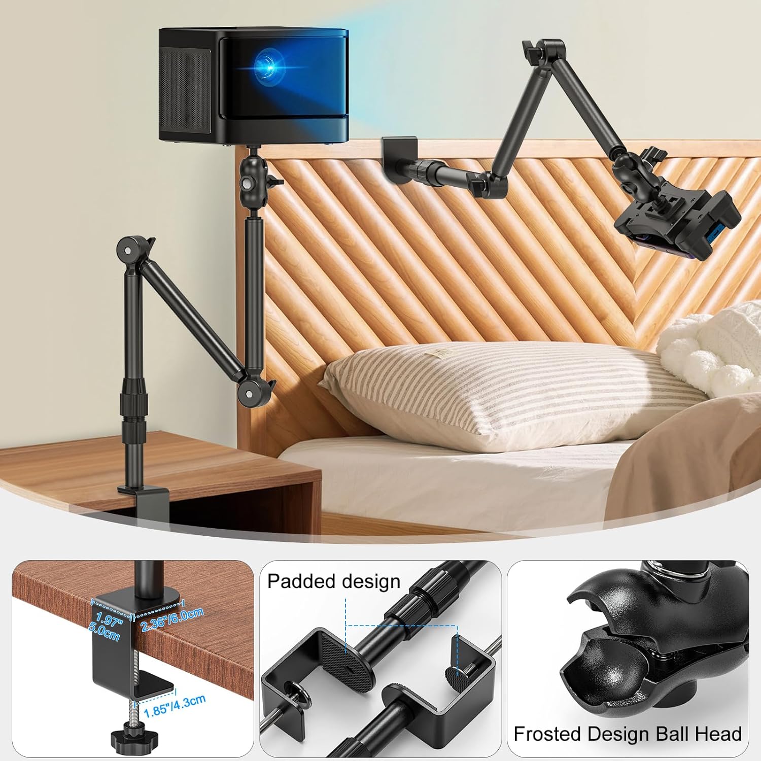 Multi-Functional Clamp – The adjustable clamp base opens up to 5.79 cm and comes with padding to protect your furniture from scratches. The locking adjustment knob ensures a secure fit, allowing you to clamp it to desks, tables, nightstands, bedside tables, kitchen countertops, and more.
