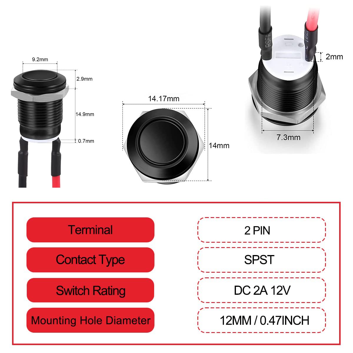 🏅Mounting Hole for Momentary Switch: 12mm; Rated current and rated voltage: 3A / 250VAC.