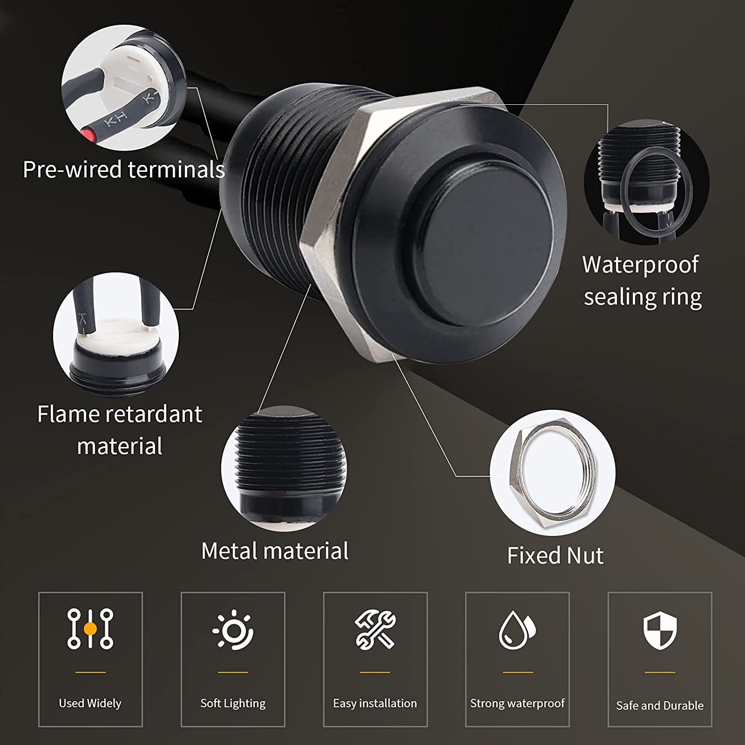 🏅10pcs 12mm waterproof pushbutton with IP67 & IK10 rating: waterproof and rustproof, can be used in wet or dusty environment.