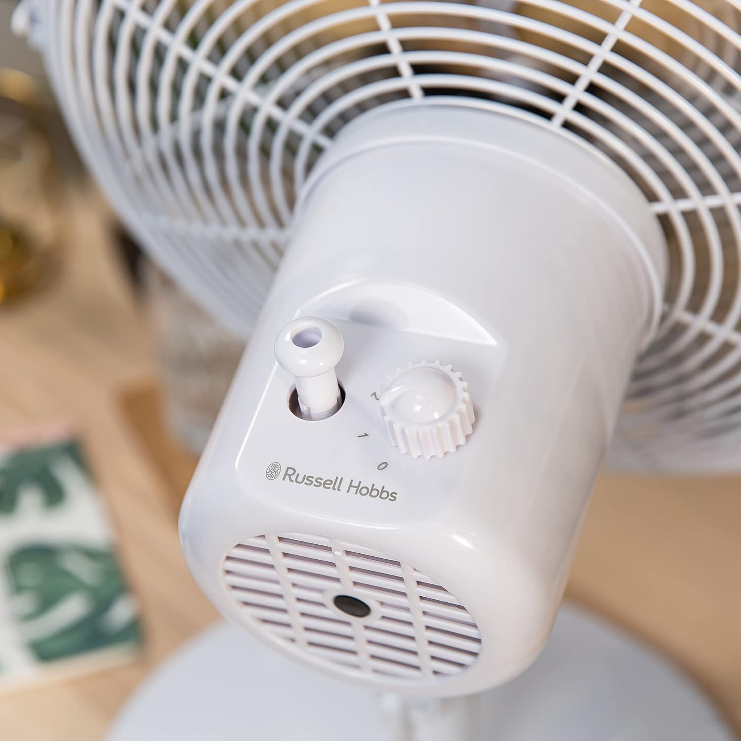 8 reviews for Russell Hobbs RHMDF1201WDW 12 Inch Scandi Electric Desk Fan, 3 Speed Settings, Oscillating Fan and Adjustable Tilt, 45W, White and Wood Effect