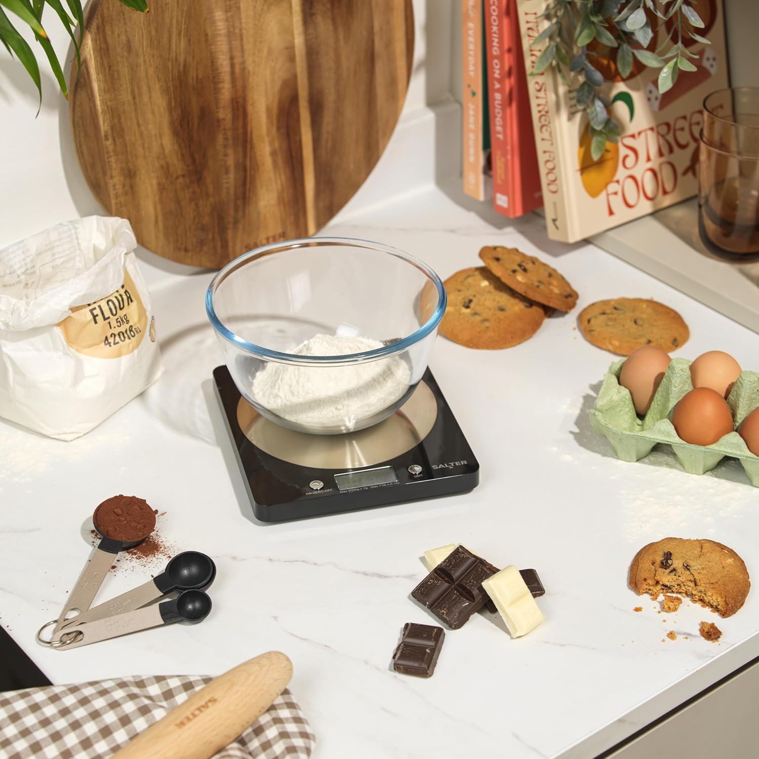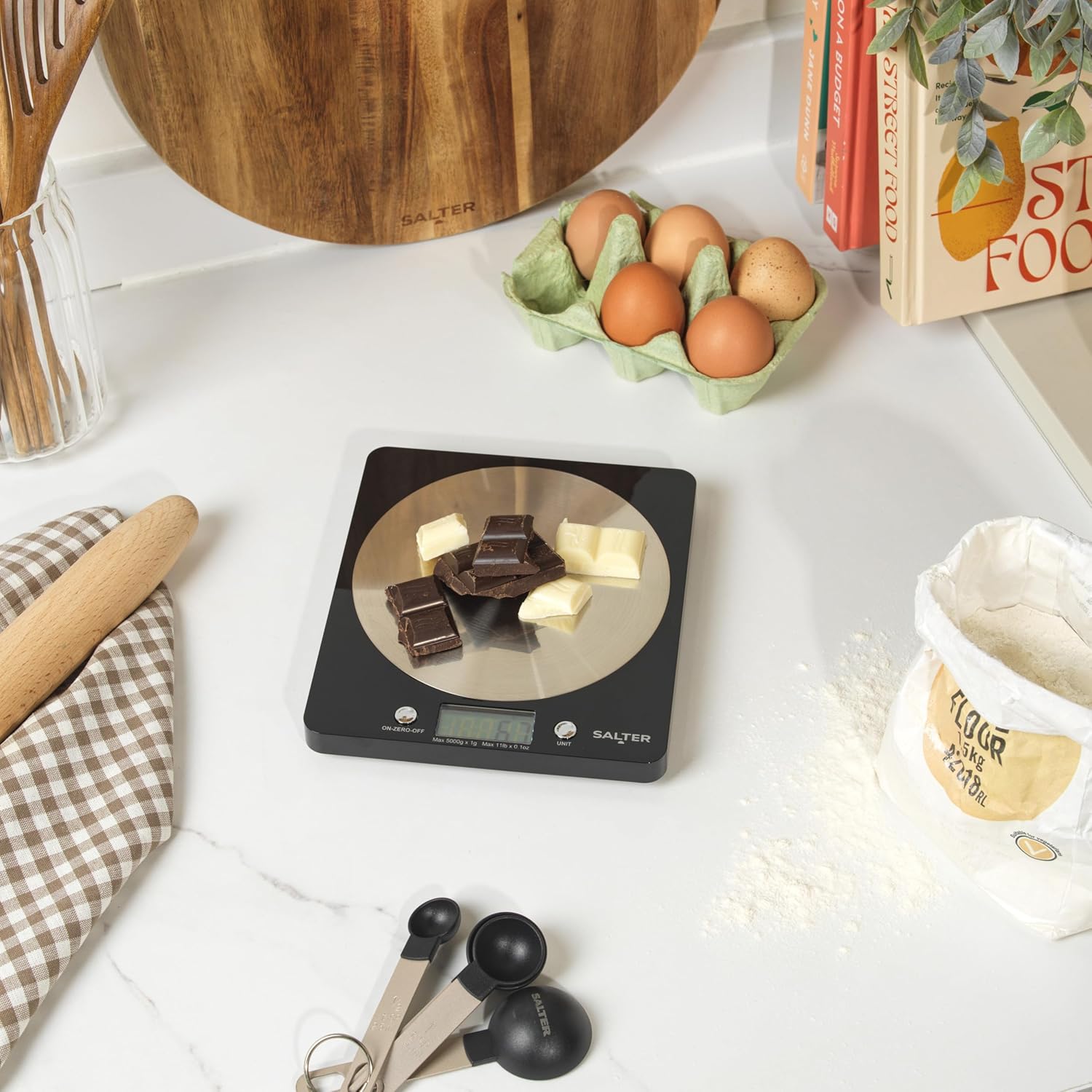 Effortlessly weigh your favorite ingredients with Salter’s electronic platform scale, perfect for any kitchen
