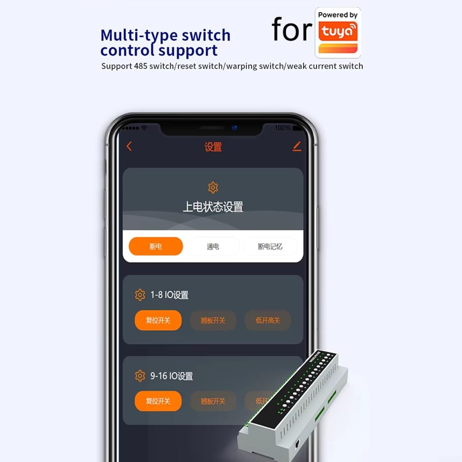 [VERSATILE CONTROL]: Our 16-channel relay power controller enables simultaneous management of multiple devices with a single unit. This smart switch system streamlines your home automation setup, allowing you to control up to 16 different appliances or circuits independently. With support for RS485 communication protocol, it integrates seamlessly with most smart home systems for convenient remote operation.