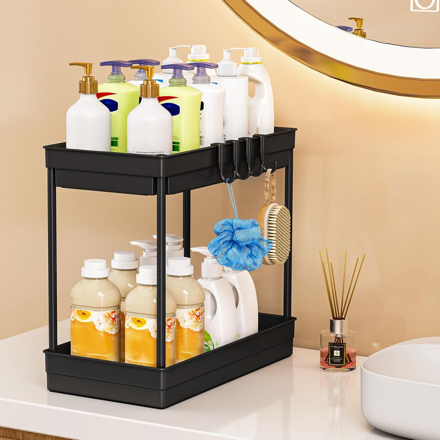 【Multi-Scene Use】Versatility is at the heart of this bathroom sink storage. Whether you need it in your kitchen for seasoning bottles, in the bathroom for toiletries, or in the laundry room for detergents, adapts to any environment seamlessly. It’s perfect for enhancing organization in any space!