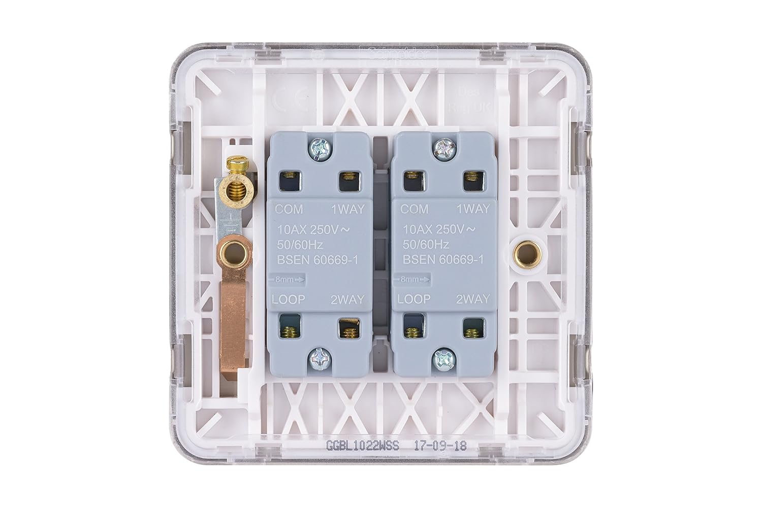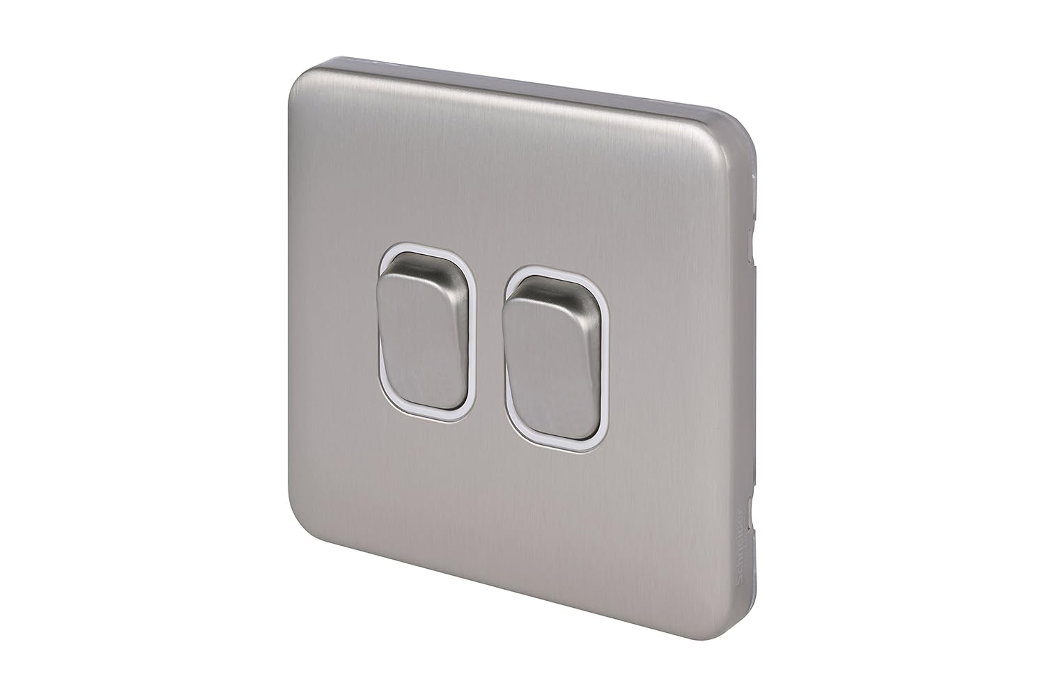 Schneider Electric Lisse Screwless Deco – Double 2 Way Light Switch, 10AX, GGBL1022WSS, Stainless Steel with White Insert