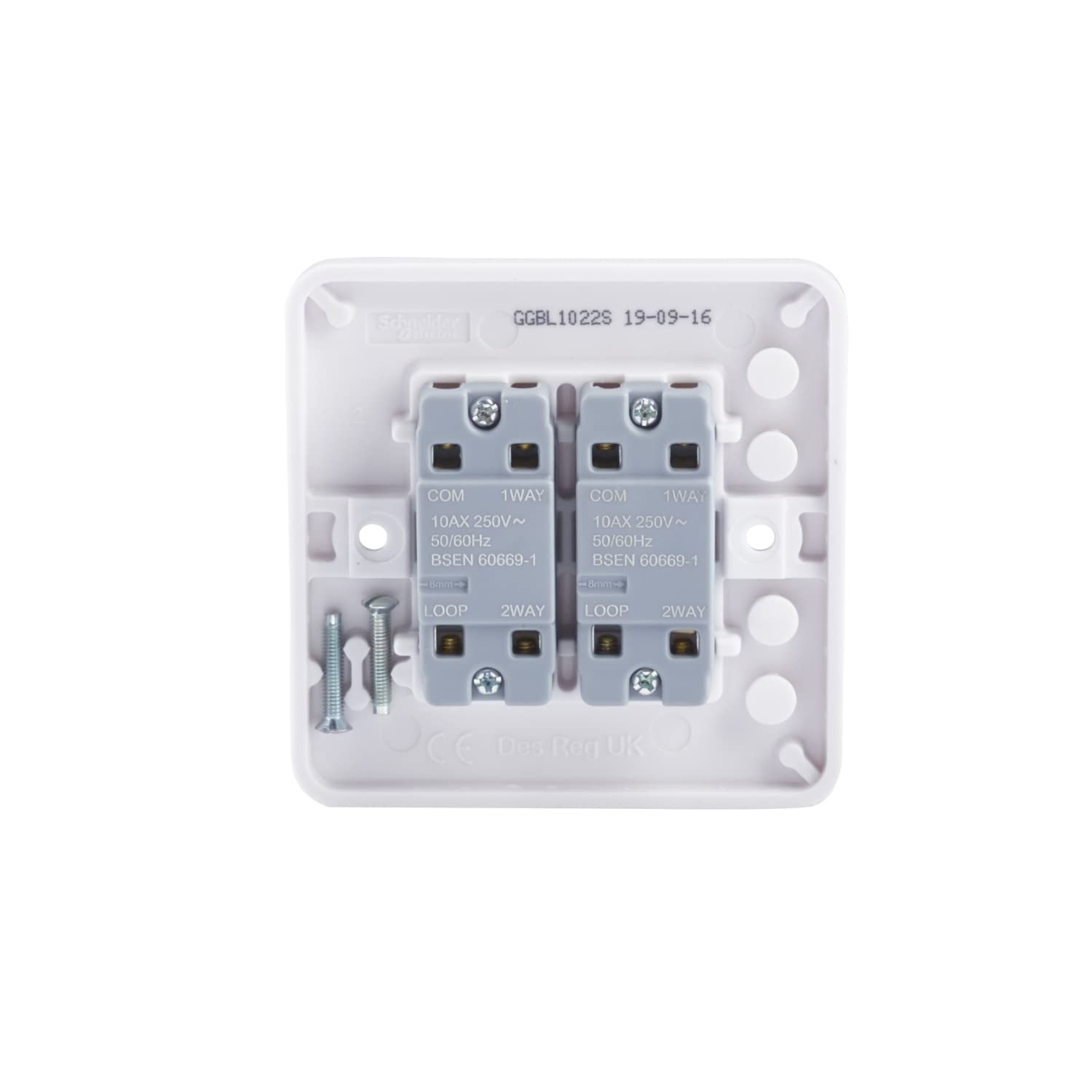 Schneider Electric Lisse White Moulded – Double 2 Way Light Switch, 10AX, GGBL1022S, White