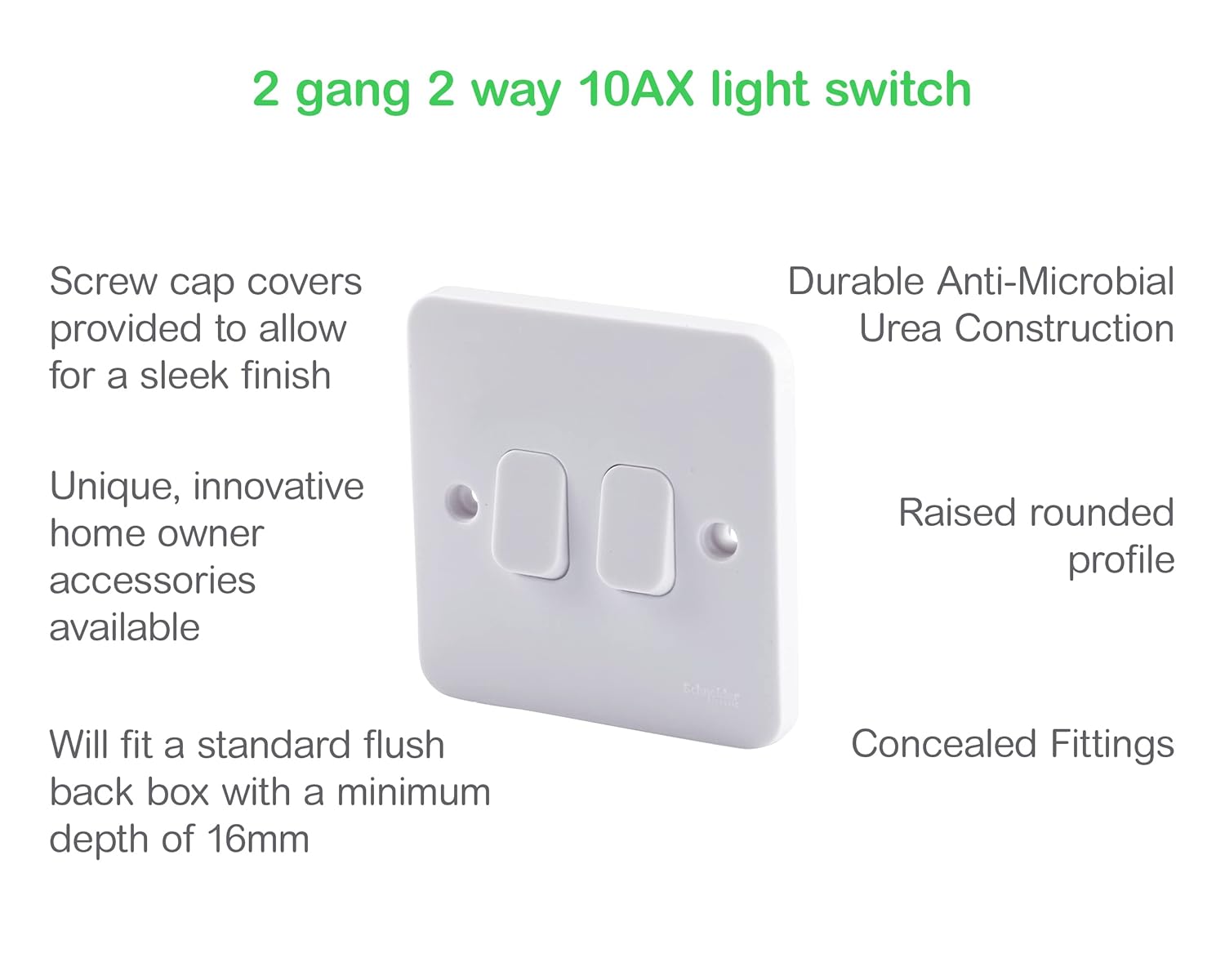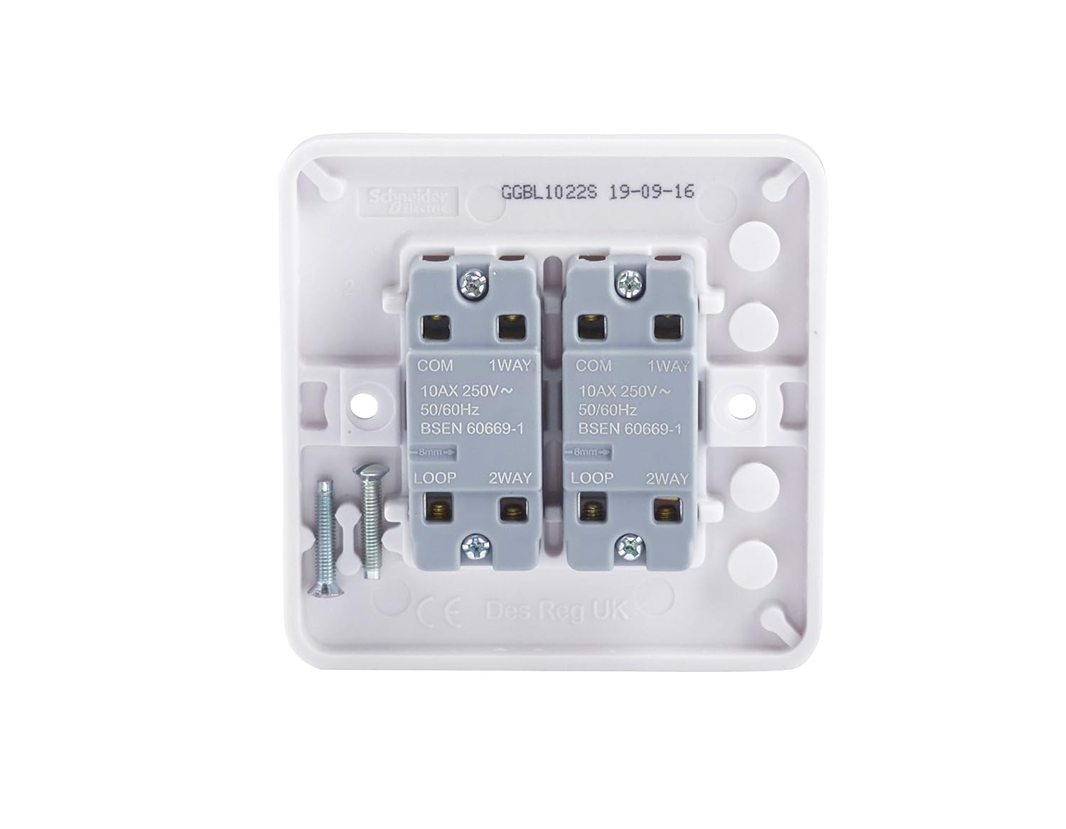 13 reviews for Schneider Electric Lisse White Moulded – Double 2 Way Light Switch, 10AX, GGBL1022S, White