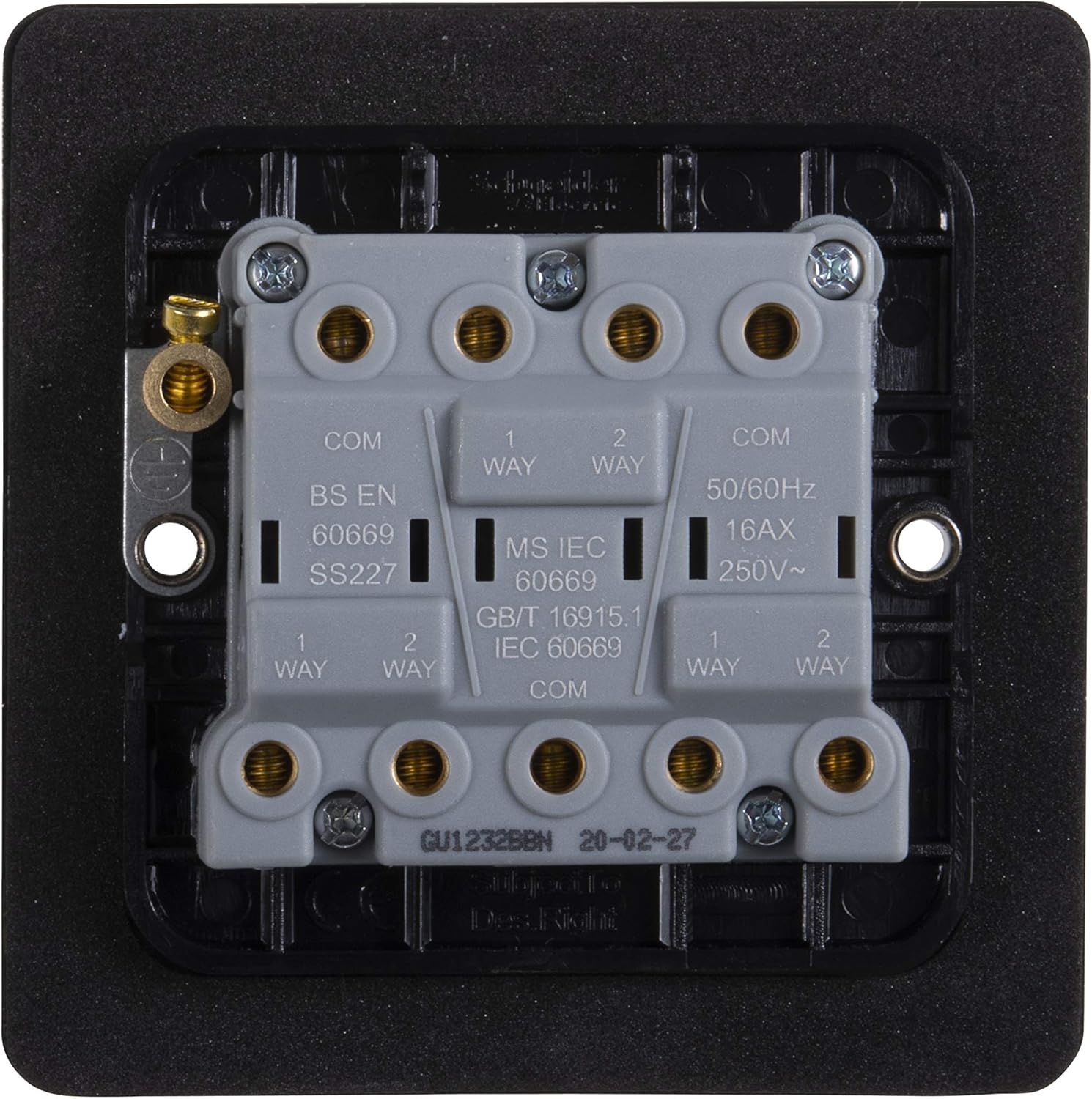 Independent mechanical & electrical connection for enhanced safety. Large footprint: Provides extra strength and reduces the need for additional decorating. Tamperproof front plates with a 4 point front plate secure connection. Plated earth straps provide corrosion free life. Two sets of fixing screws to accommodate differing mounting box depths. In-line angled terminals for easy access during installation. A choice of 12 finish combinations. Ultra slim profile: 1.5mm plate thickness provides a design-led alternative to traditional accessories.
