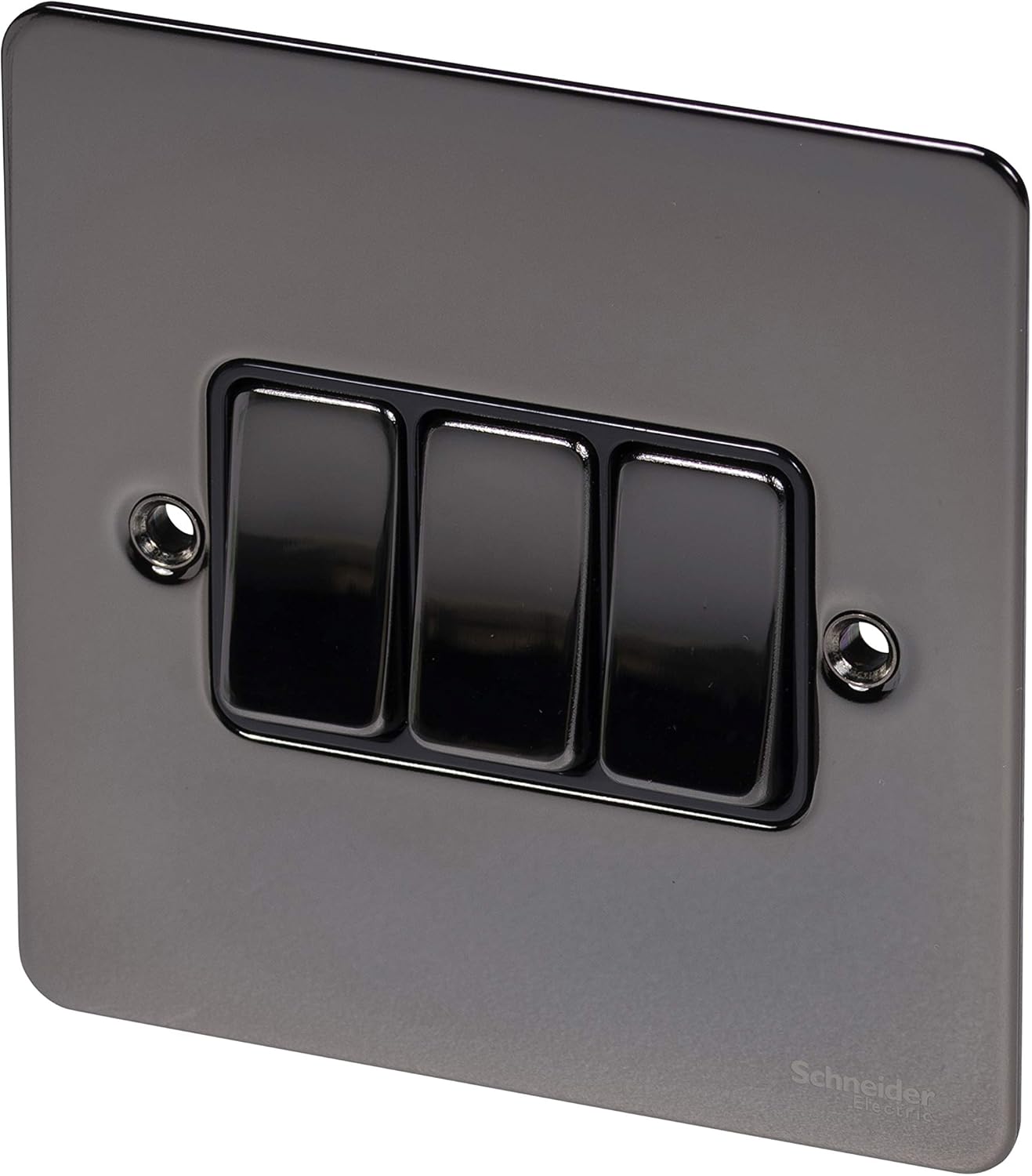 9 reviews for Schneider Electric Ultimate Flat Plate – 3 Gang Rocker 2 Way Light Switch, Single Pole, 16AX, GU1232BBN, Black Nickel with Black Insert