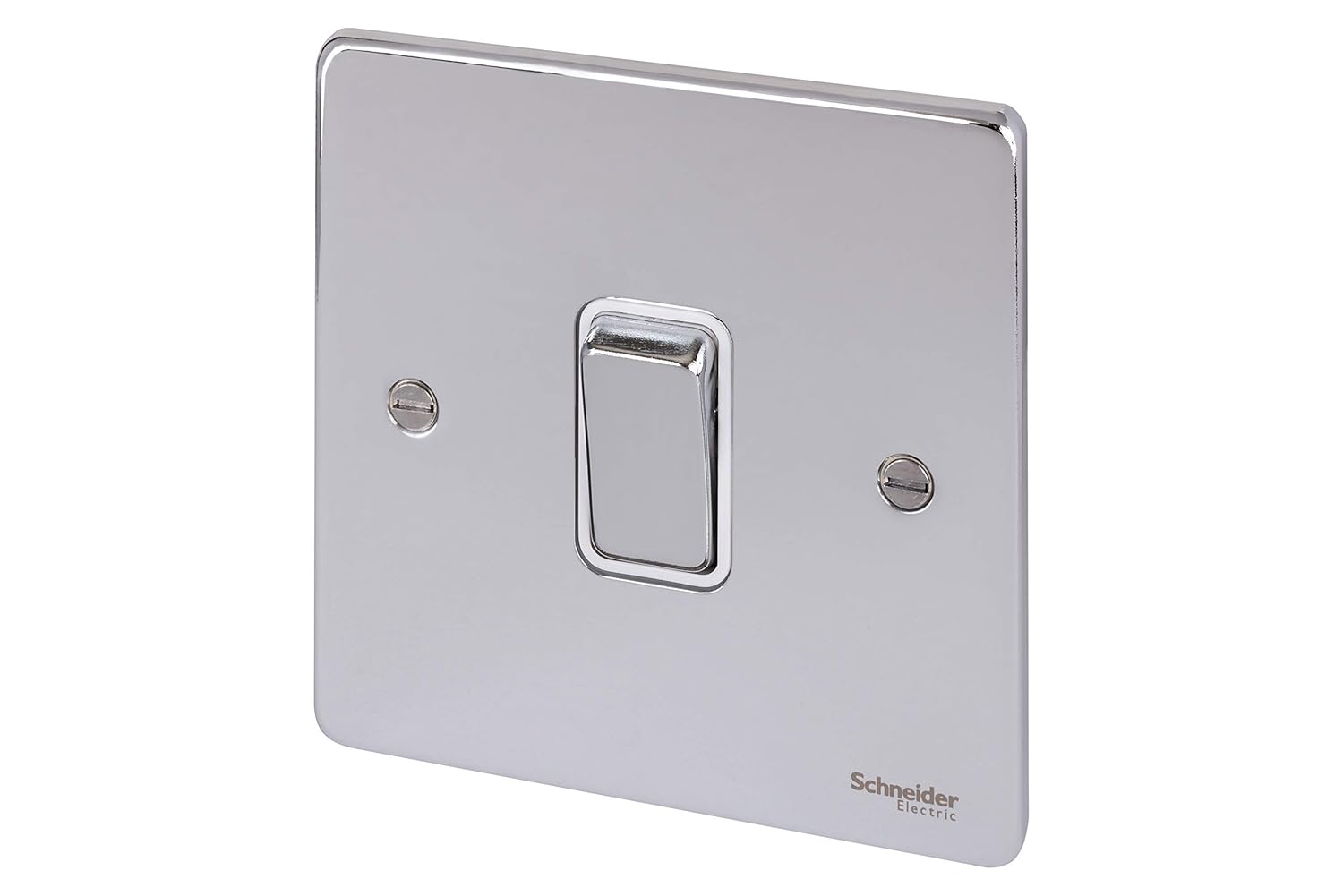Schneider Electric Ultimate Low Profile – Single 2 Way Light Switch, GU1512WPC, Polished Chrome with White Insert