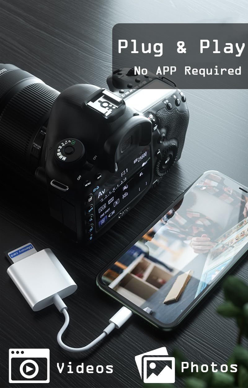 Plug and Play: The SD Card Reader does not require third-party apps, uses the iOS built-in Files app, and supports play videos.