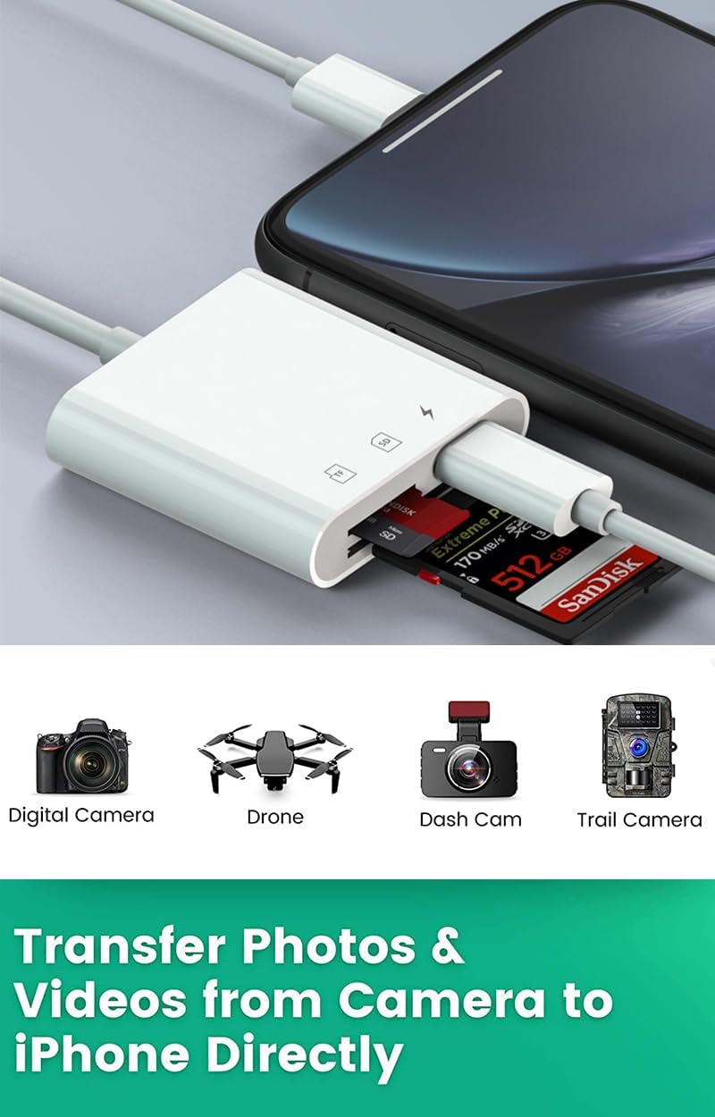 13 reviews for SD Card Reader for iPhone iPad, Oliveria Trail Game Camera 2 in 1 SD Card Viewer with Dual Slot for MicroSD/SD, Photography Memory Card Adapter, Simultaneous Charging and Card Reading, Plug and Play