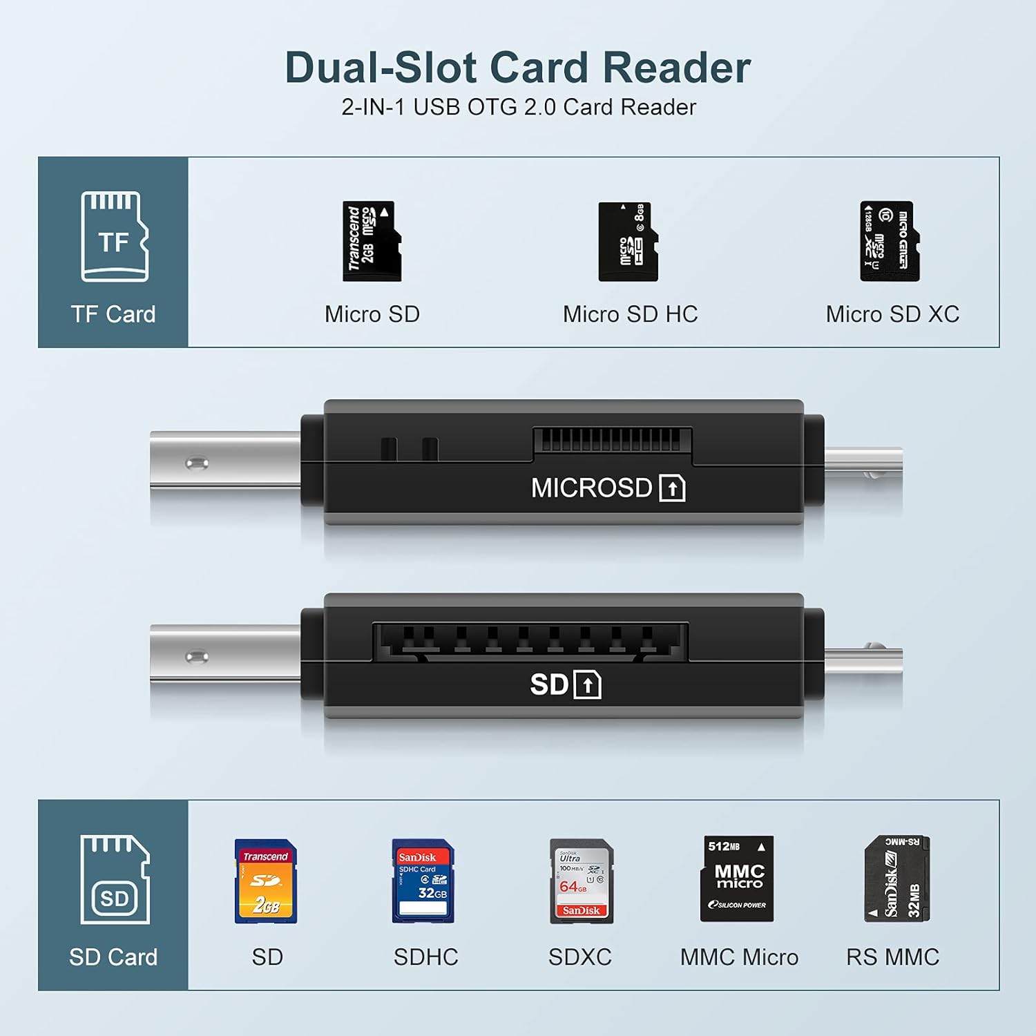 SD Card Reader, USB OTG Adapter 2.0 Micro Portable Memory Card Reader for SD, Micro SD, SDXC, SDHC, Micro SDHC, Micro SDXC