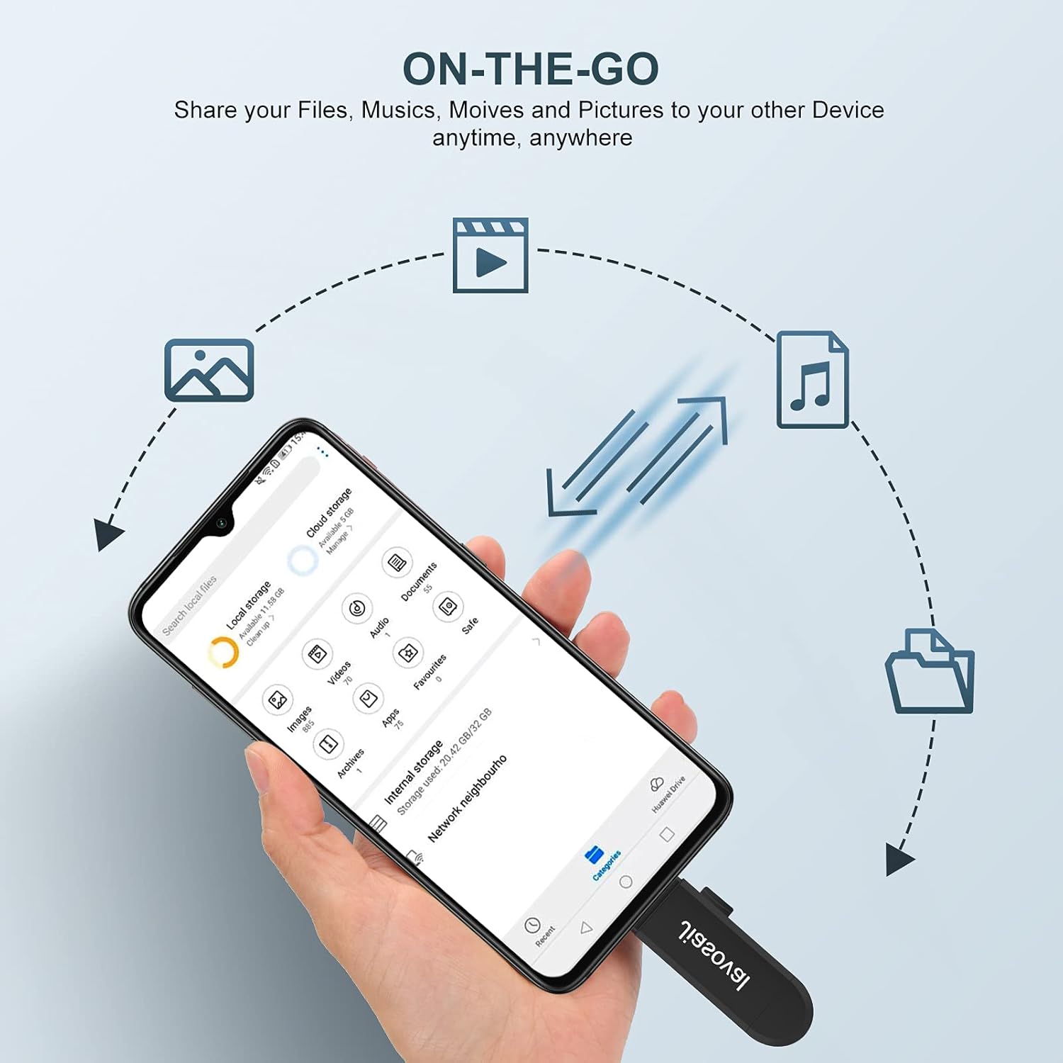 Work on Android Smartphones and Tablets: Insert the SD/Micro card to the card writer and plug into the smartphone/Tablet that support USB OTG(on-the-go) function with the Micro USB port. Then you can manage your file as you want, playback video, musics or pictures directly from external memory card without occupying space on device.