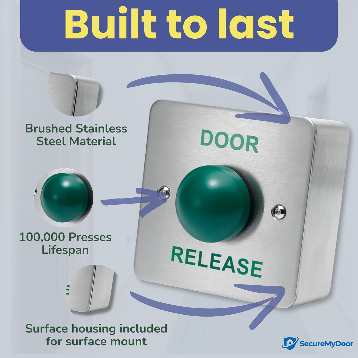 VERY STRONG – Made from brushed stainless steel, our ‘DOOR RELEASE’ button lasts a long time and stays strong even in busy places.