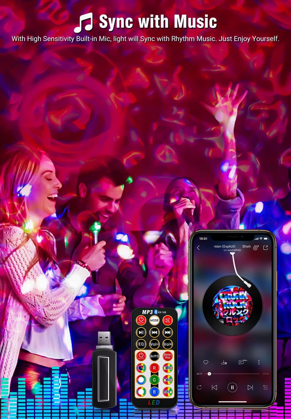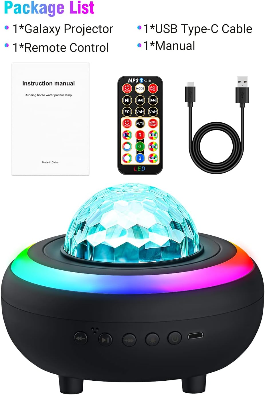 【Built-in Bluetooth speaker】The marquee light has a built-in Bluetooth music player, connect your mobile phone to Bluetooth to play music, adjust music, or use the USB slot to play music. Use the projector to create a relaxing environment while listening to your music.
