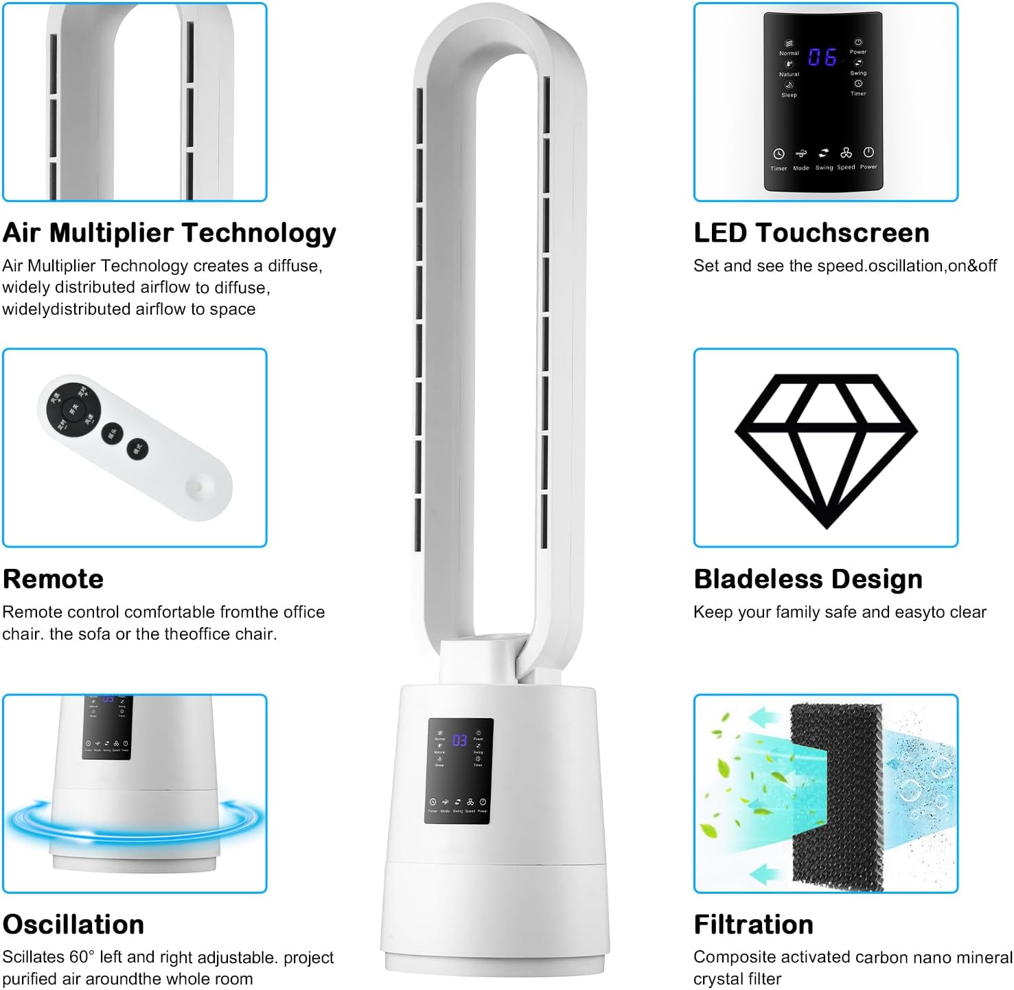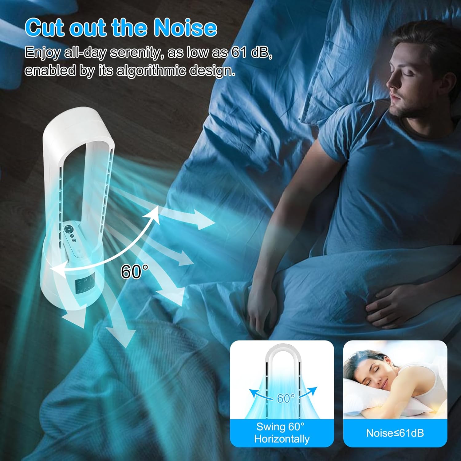 【Lower Noise, More Serenity】 Having a good sleep quality is extremely important! This bladeless fan is designed to achieve ultra-quiet and smooth oscillation in sleep mode; The LED will automatically turn off after 5 seconds, and the 8 H timer will be activated at the same time, allowing you to enjoy 8 hours of deep sleep with a noise as low as 30dB. The quiet and wonderful cool environment does not disturb every sweet dream.