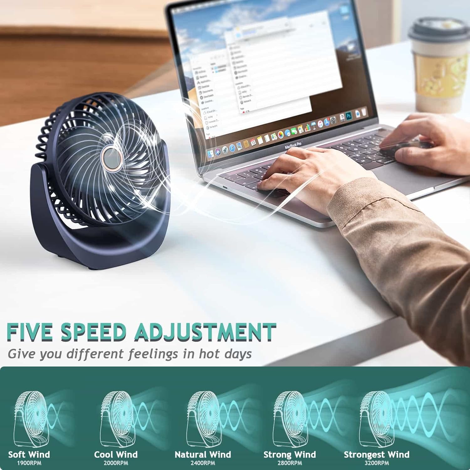 ❃【5-Speed Adjustable&Cooling your Summer】5-stage easily adjustable wind speed. Just press the “ON” button on the back of the small fan to switch between Wind/Gentle Wind/Natural Wind/Cool Wind/Strong Wind speed. Meet your different cooling needs.
