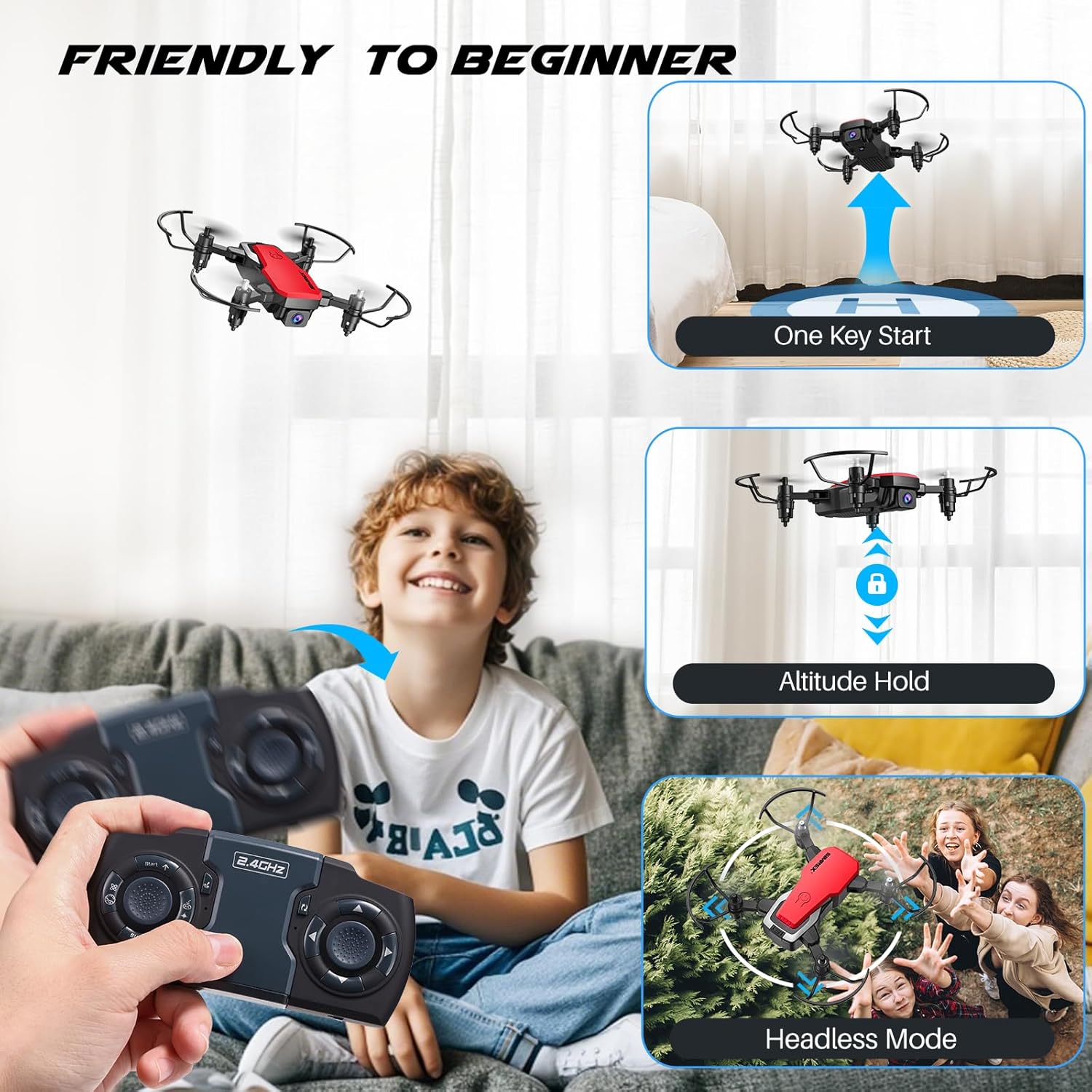 SIMREX X300C Mini Drone with Camera 720P HD, RC Quadcopter Foldable, Altitude Hold, 3D Flip, Headless Mode, Gravity Control and 2 Batteries, Gifts for Kids, Adults, Beginner, Red