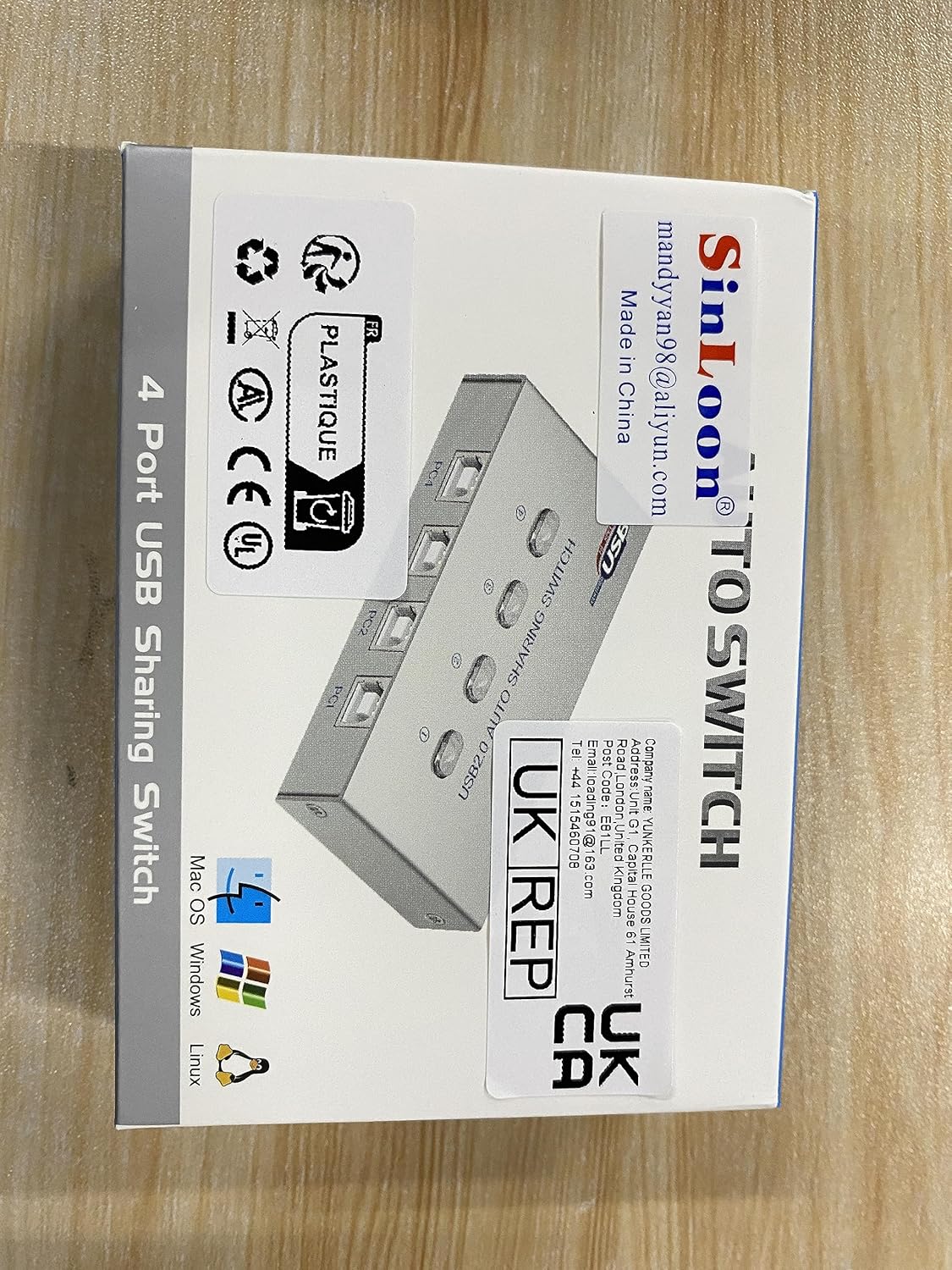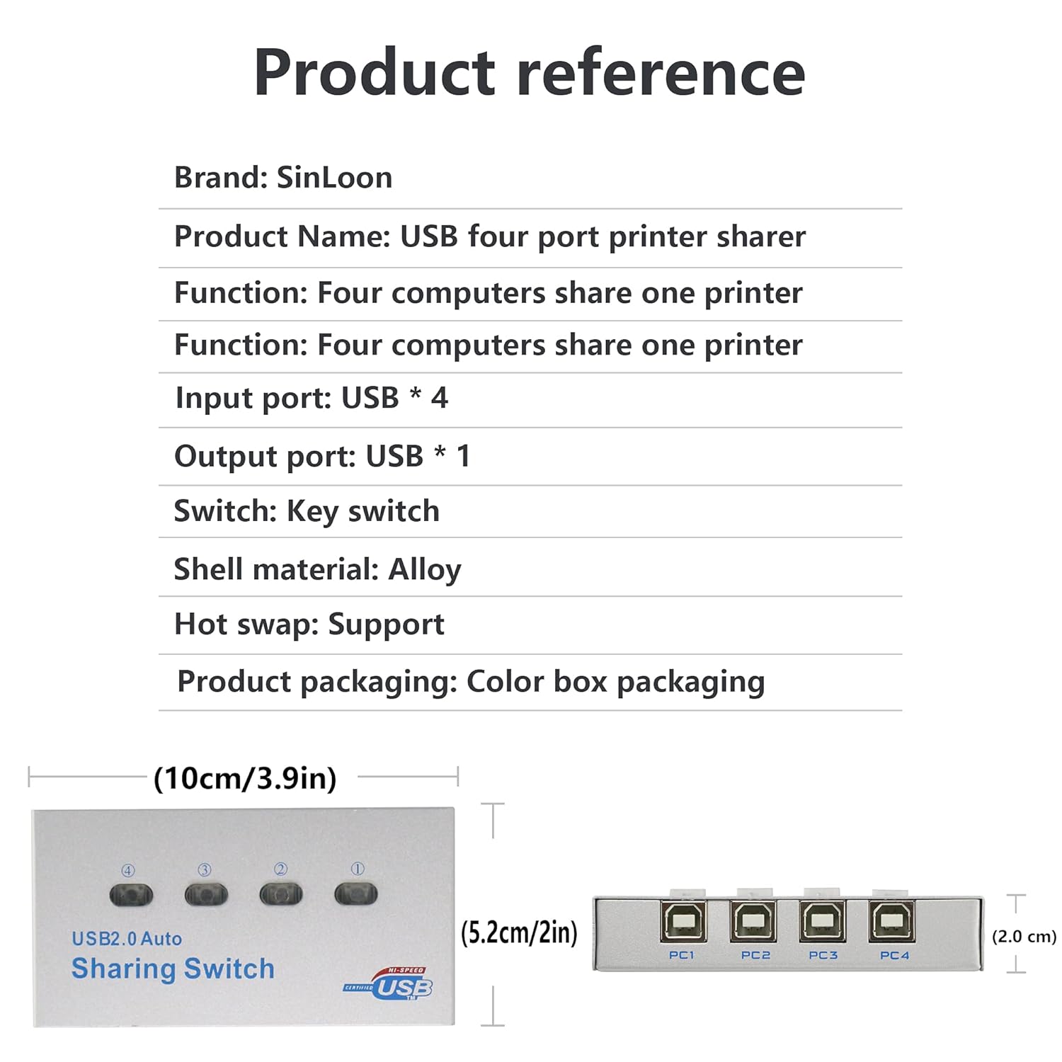 5 reviews for SinLoon 4-Port USB Printer Sharing Switch – 4 PCs Share 1 USB Device, High Speed Switcher for Printer, Scanner, External (1 to 4)