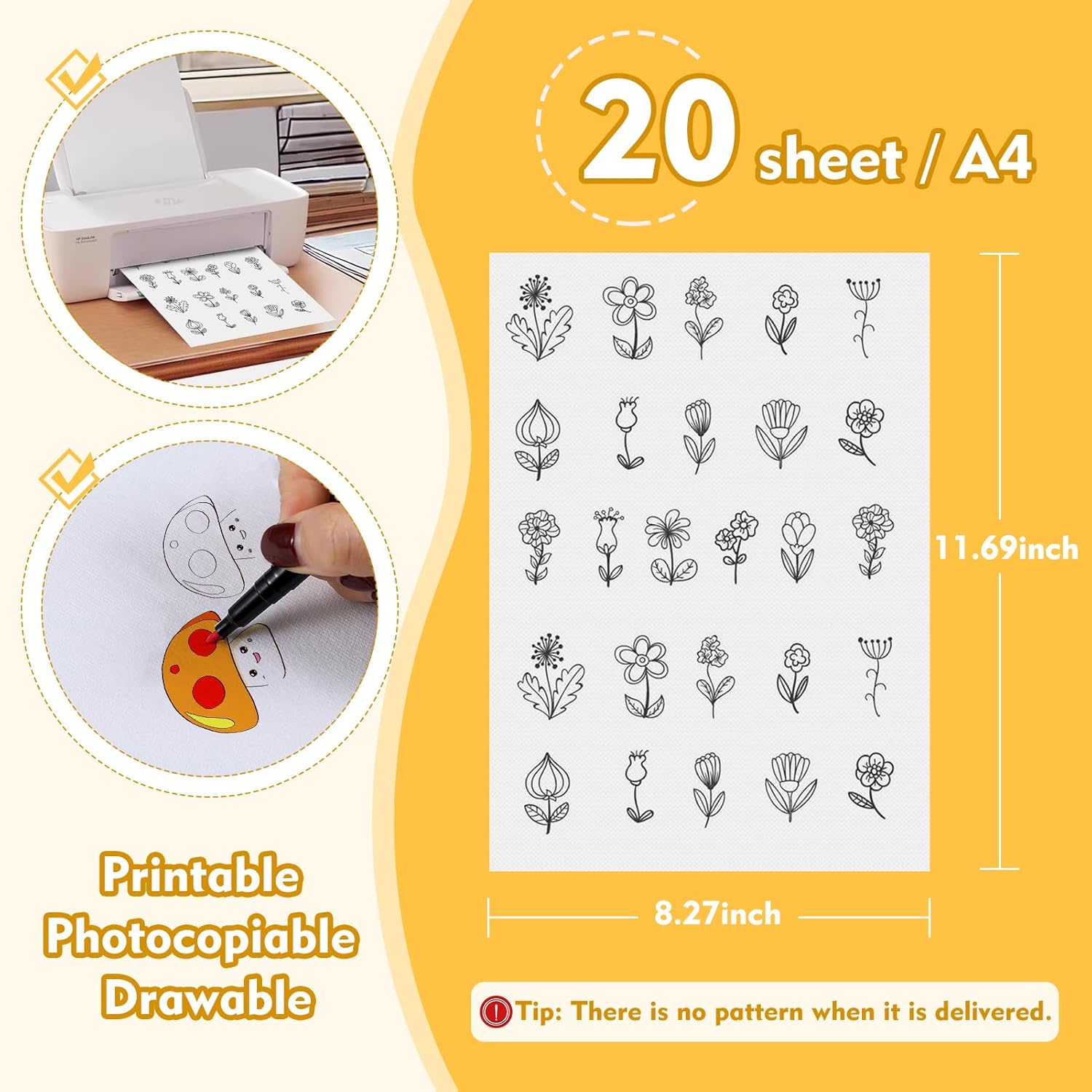 Siumir 20PCS Embroidery Stabilizer, A4 (8.27″x11.69″) Sticky Water Soluble Embroidery Paper Print or Draw Stabilizer for Embroidery by Hand & Machine