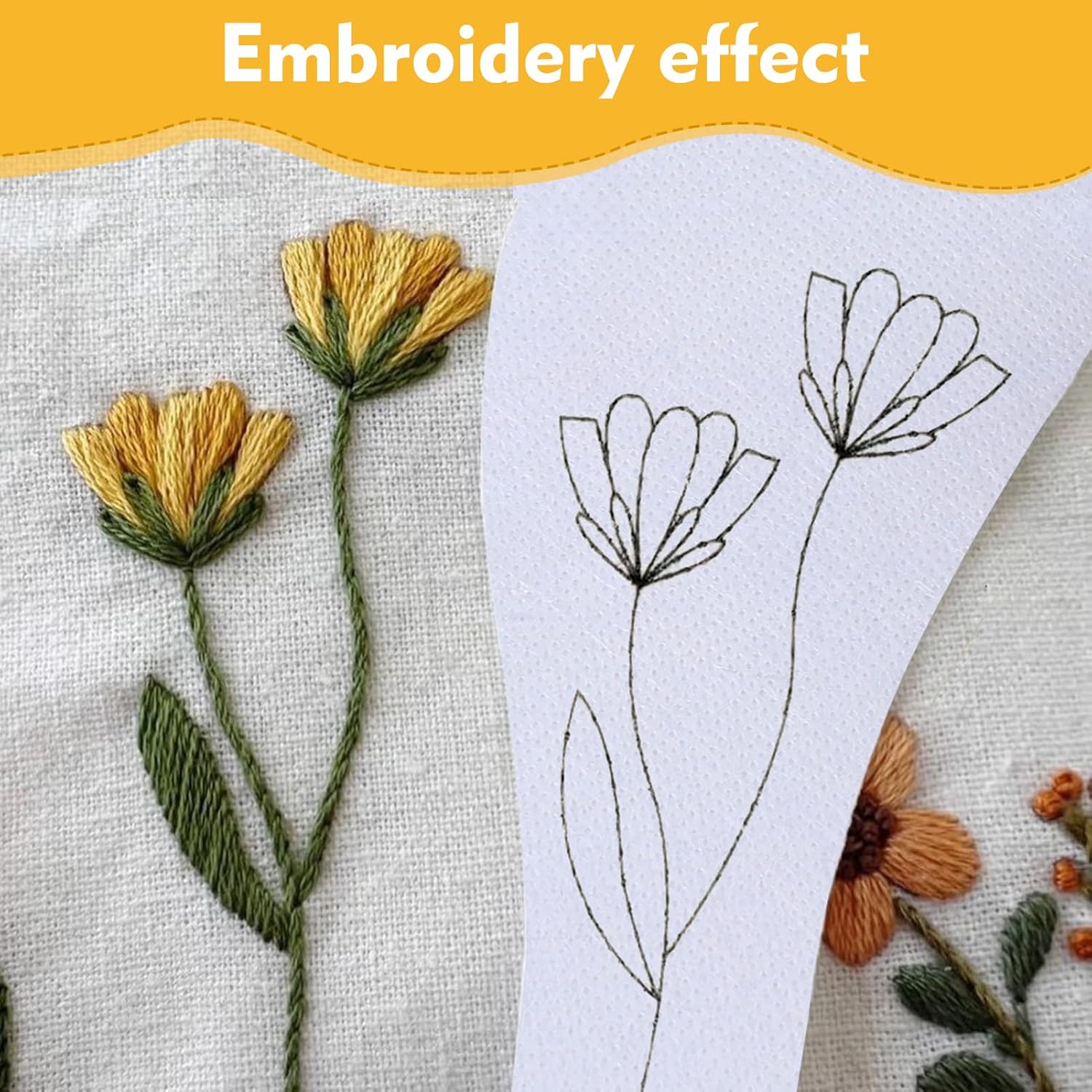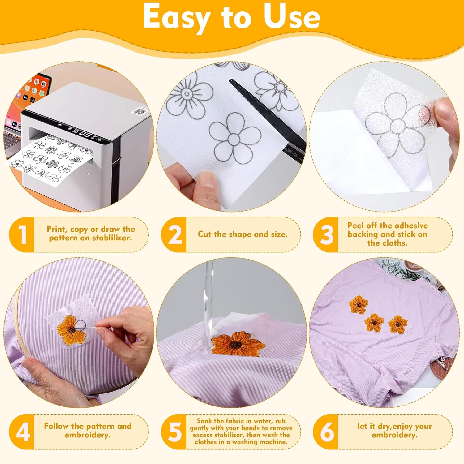 💮 Easy to use: Transfer the pattern onto the Wash Away Stabilizer, Cut the size you need, Peel off the release paper and stick to the fabric, Follow the pattern and embroidery, Soak and rub it gently to remove excess stabilizer, It’ll not mess up the yarn