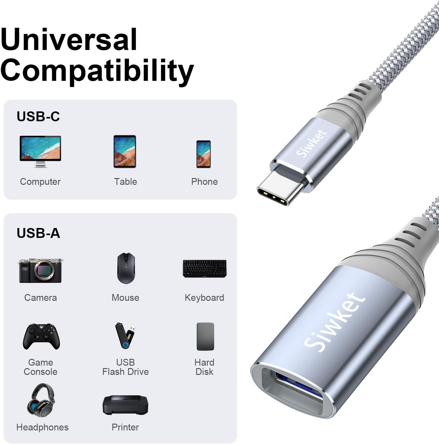 13 reviews for Siwket USB C to USB 3.0 Adapter, Type C Male to USB Female OTG Adapter Cable Compatible With Thunderbolt 3 MacBook Pro 2018/Air 2018,iPad Pro,Huawei P30/P20,Mate 30/40,Samsung Galaxy S20 S10-Grey