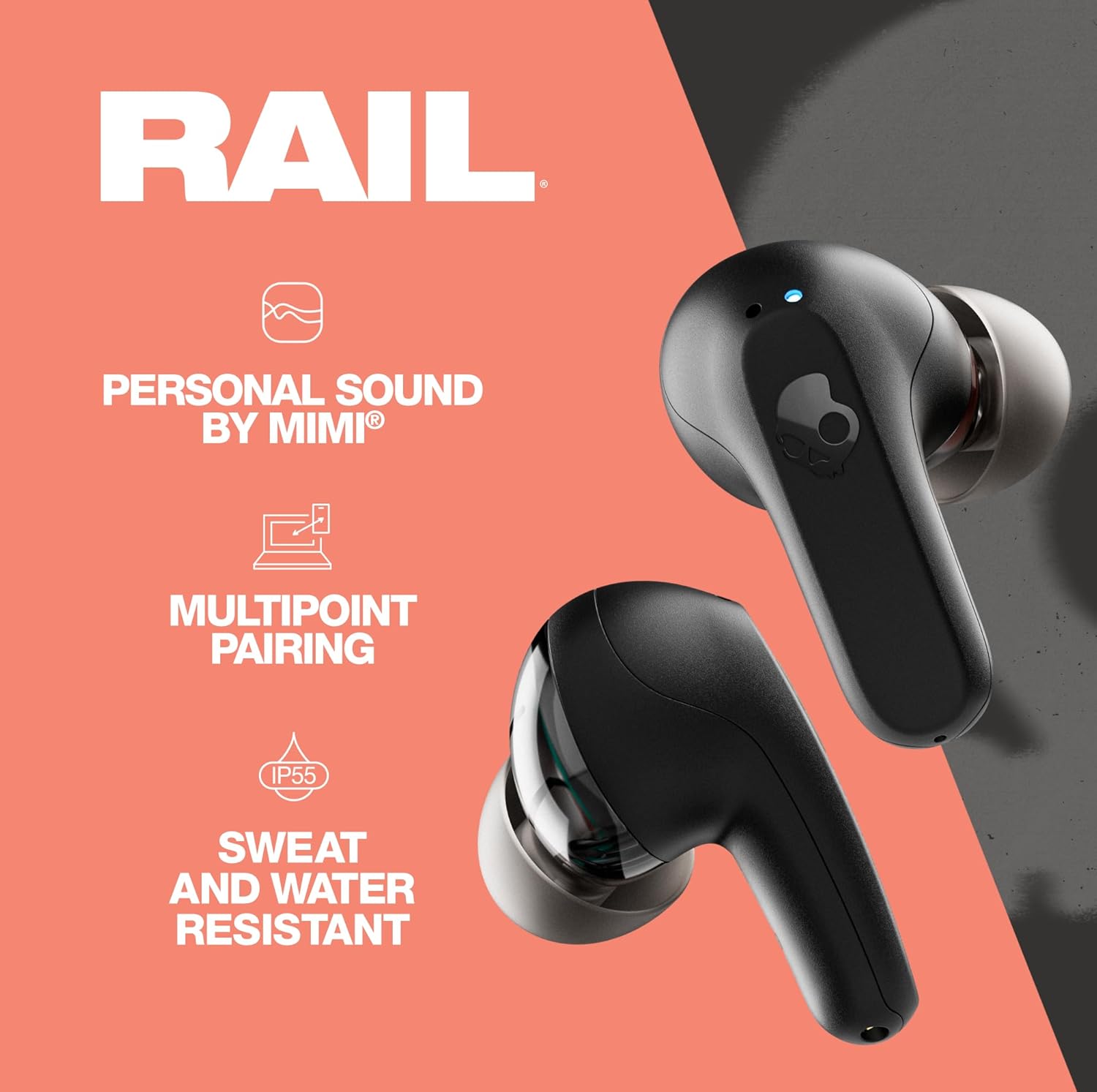 Latest Sound Tech – The Rail is Skullcandy’s latest premium earbuds featuring our best driver yet with deep bass and a huge dynamic range. Plus, Personal Sound lets you tune the sound to your unique hearing through the Skull-iQ App.