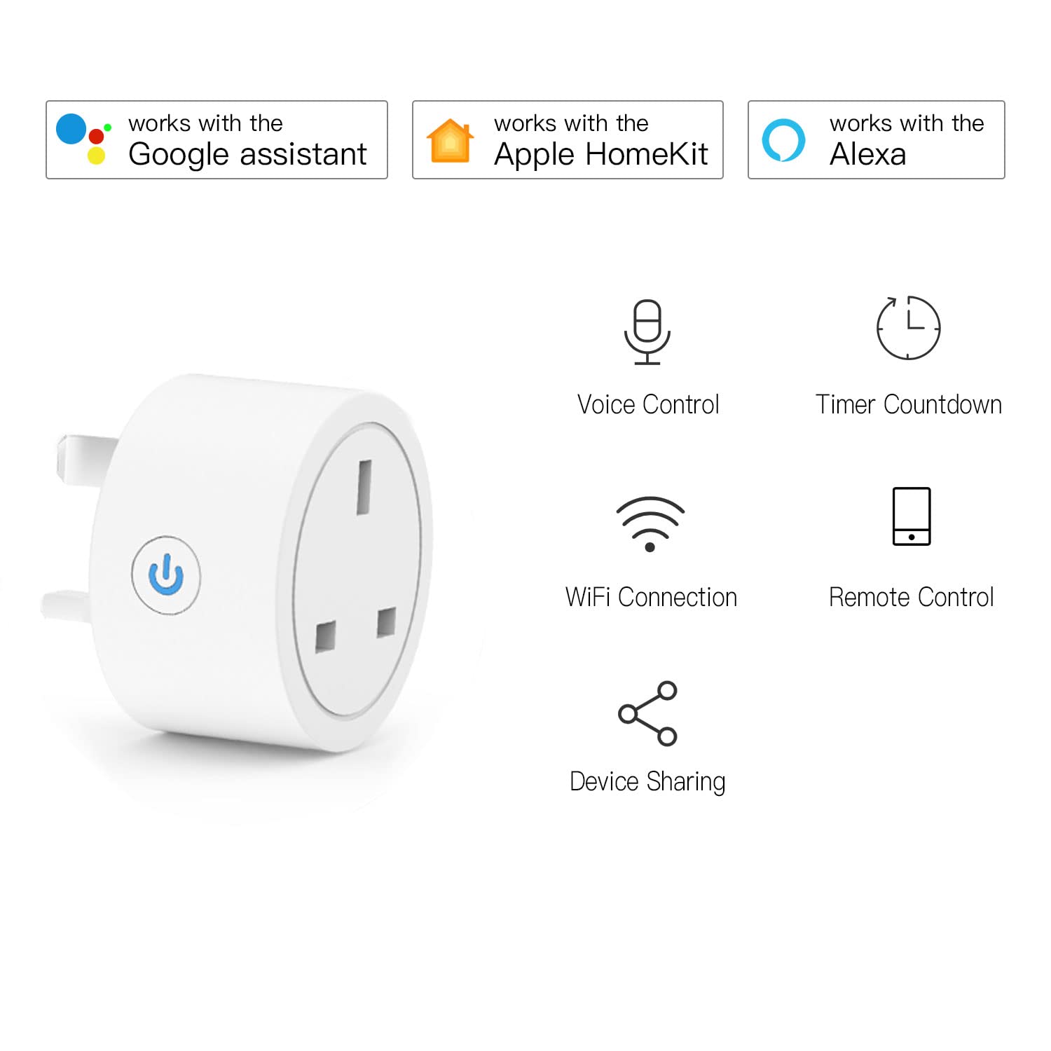 ใSiri and Alexa Voice Controlใ: The smart socket can be used with Siri, Alexa and Google Home voice control assistants. Making it easier to manage the device with voice commands. All you need to do is connect your home WiFi to the socket and use simple voice commands to control them. “Hey Siri, turn on the lamp”.