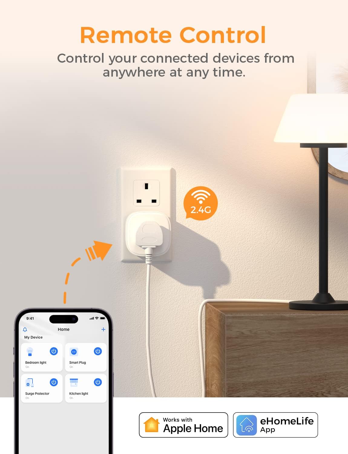 【Simplify User Experience】The Amazon smart plug is compatible with HomeKit, allowing control and management through Apple devices like iPhone, iPad, and Apple Watch. This means users can control and monitor multiple smart devices through a unified application.