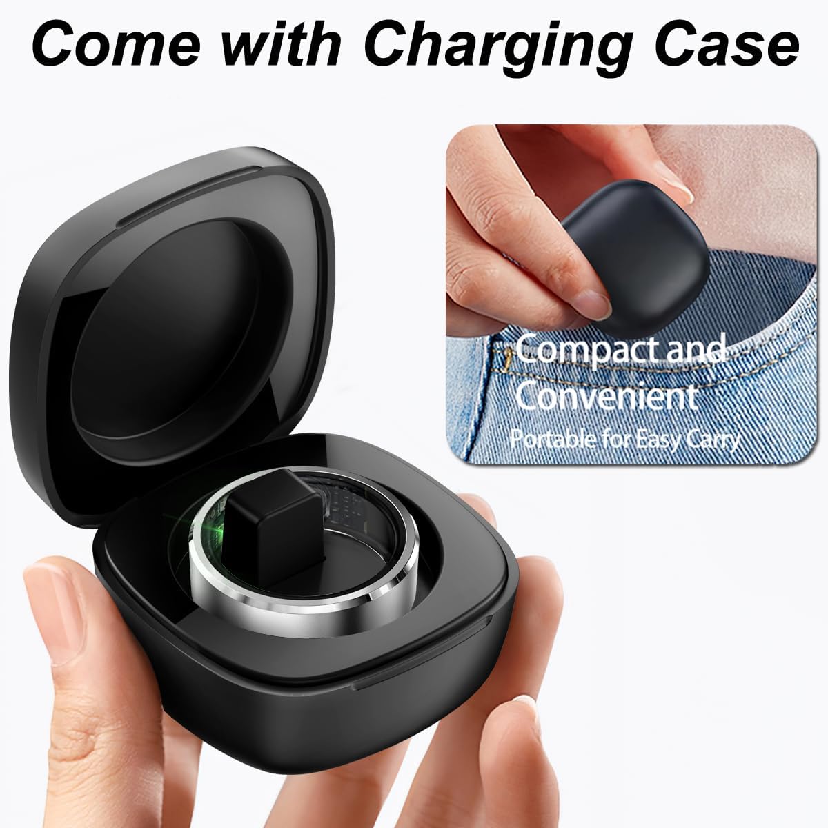 Charging Compartment & Easy to Carry: This smart ring comes with a charging case that eliminates the need for a charging cable, making it easy to carry and store. Able to accompany long term travel or business trips.