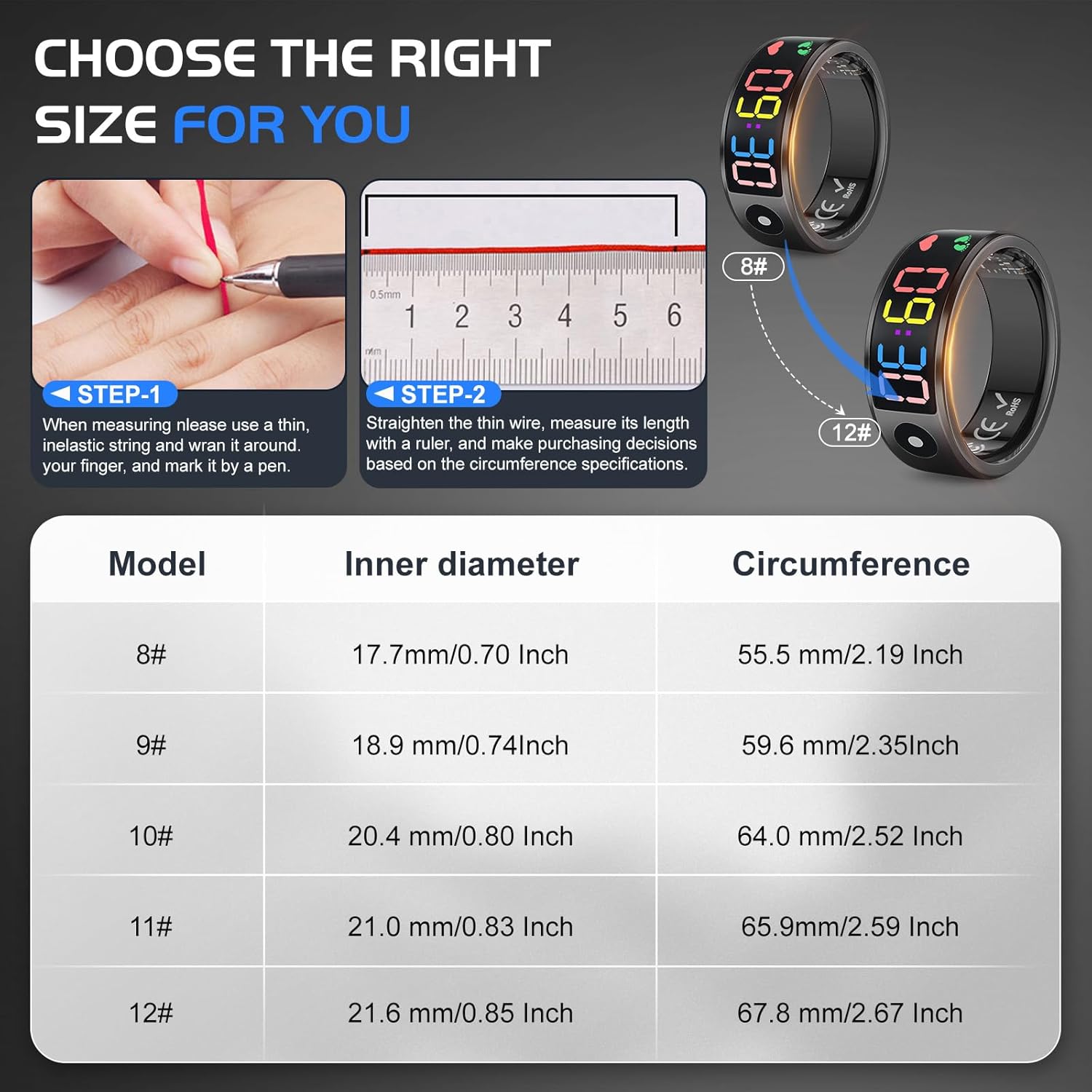 Smart Ring for Men Women, Sleep & Heart Rate Monitor Health Ring, Fitness Ring Heart Rate Blood Oxygen Sleep Monitor Step Counter Activity Tracker for Android iOS with Charging Case (#10-T1/2)