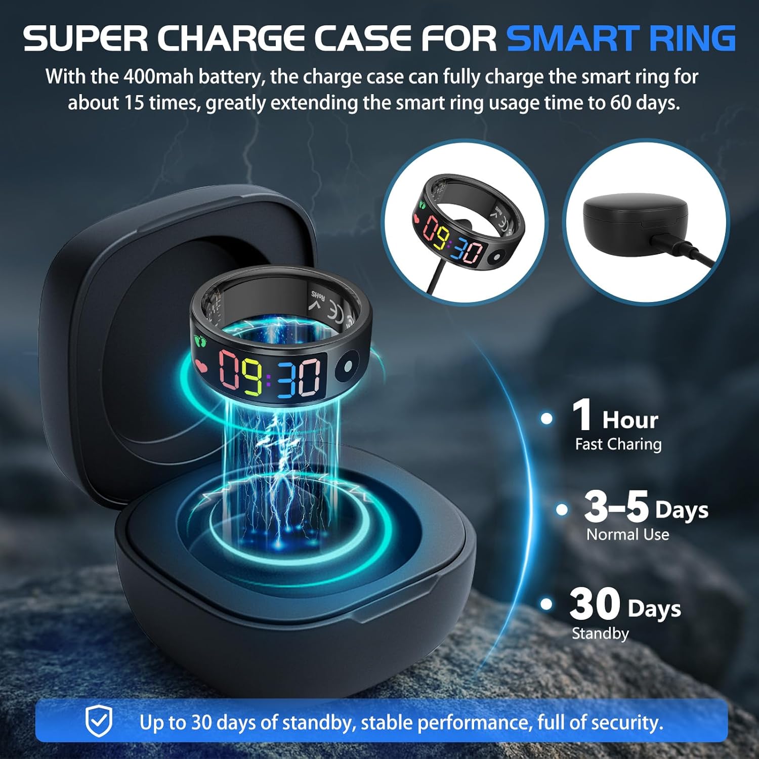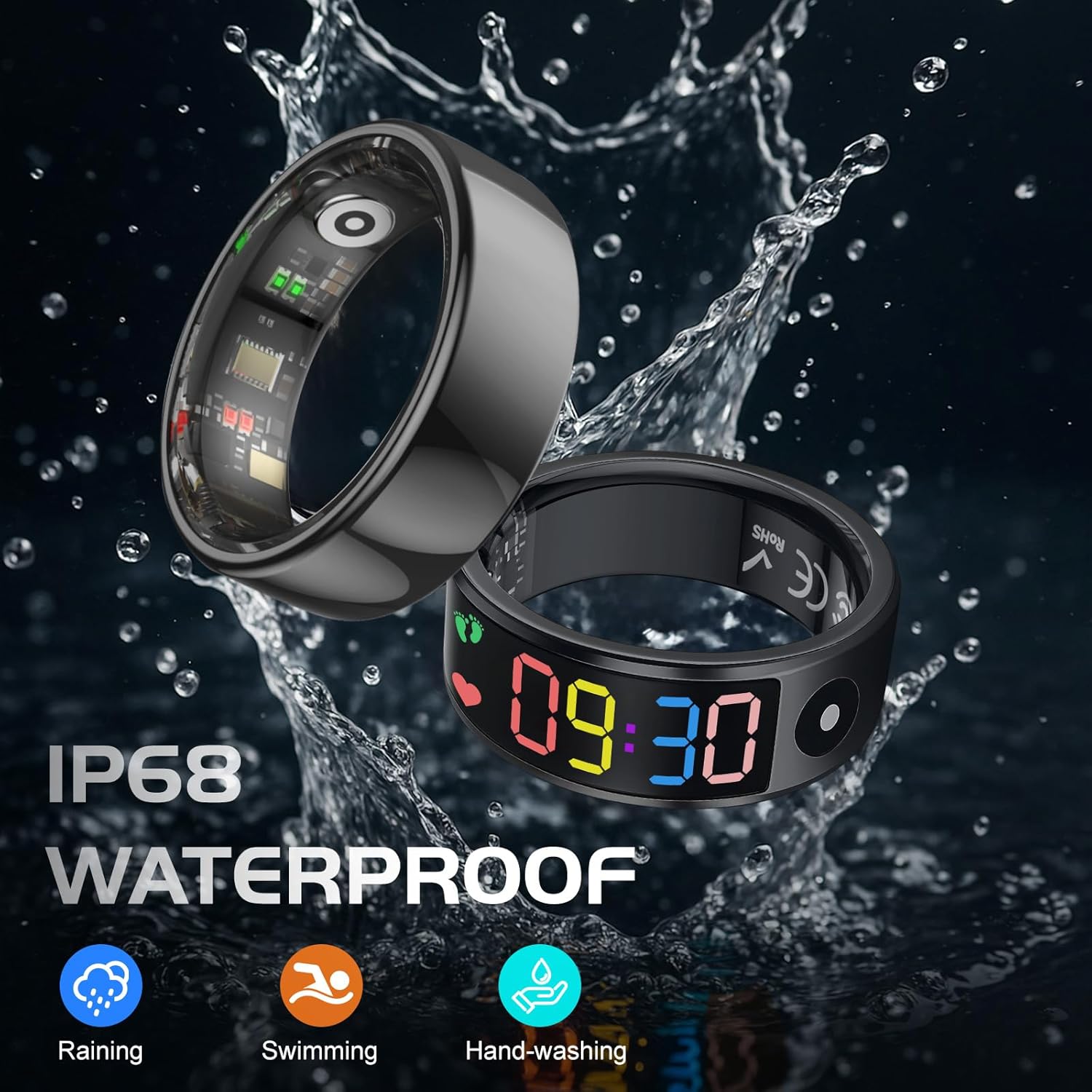 【Wtih Charging case】: This smart ring women men comes with a charging case that eliminates the need for a charging cable, making it easy to carry and store.The smart ring also IP68 waterproof, making it perfect for swimming, running in the rain, or intense workouts without worrying about water damage