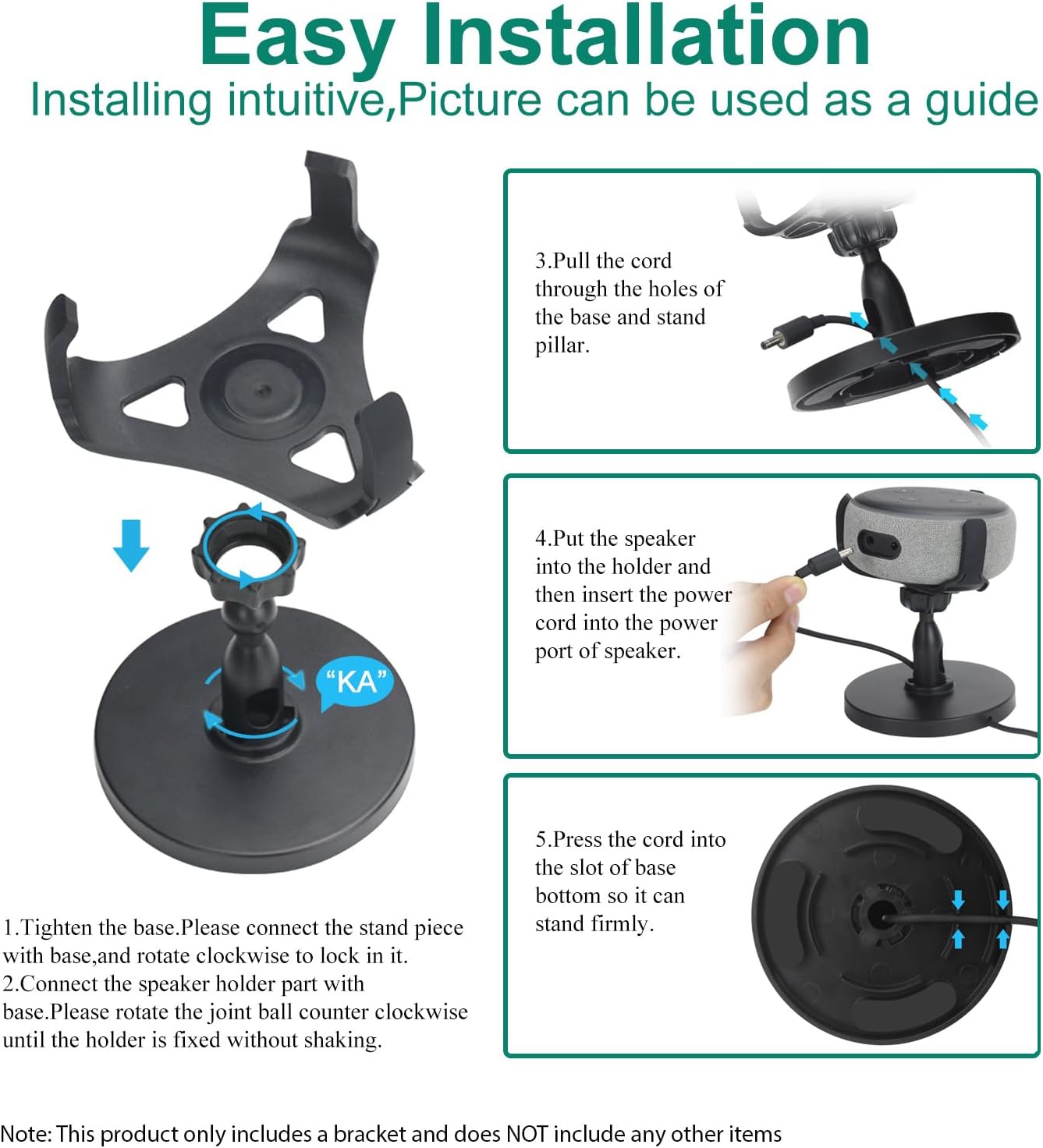 【Anti-Slip Design】: The bottom of the stand is equipped with a silicone pad that firmly secures the speaker on the desktop, protecting the surface from scratches and sliding on smooth surfaces. The top also features three silicone clips to your speaker from getting scratched.