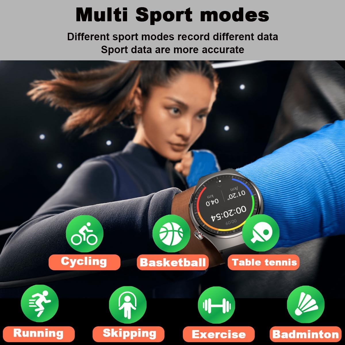 ECG PPG Monitor and Multi-Sport Modes: The smartwatch for Women with ECG and health data measurement monitoring, multisport mode, pedometer, distance, calories; ECG/PPG/heart rate/blood pressure/blood oxygen monitor. The watch has many different sports modes for your sports purposes. You can find the ECG report and sports data on the APP H Band of your smartphone.