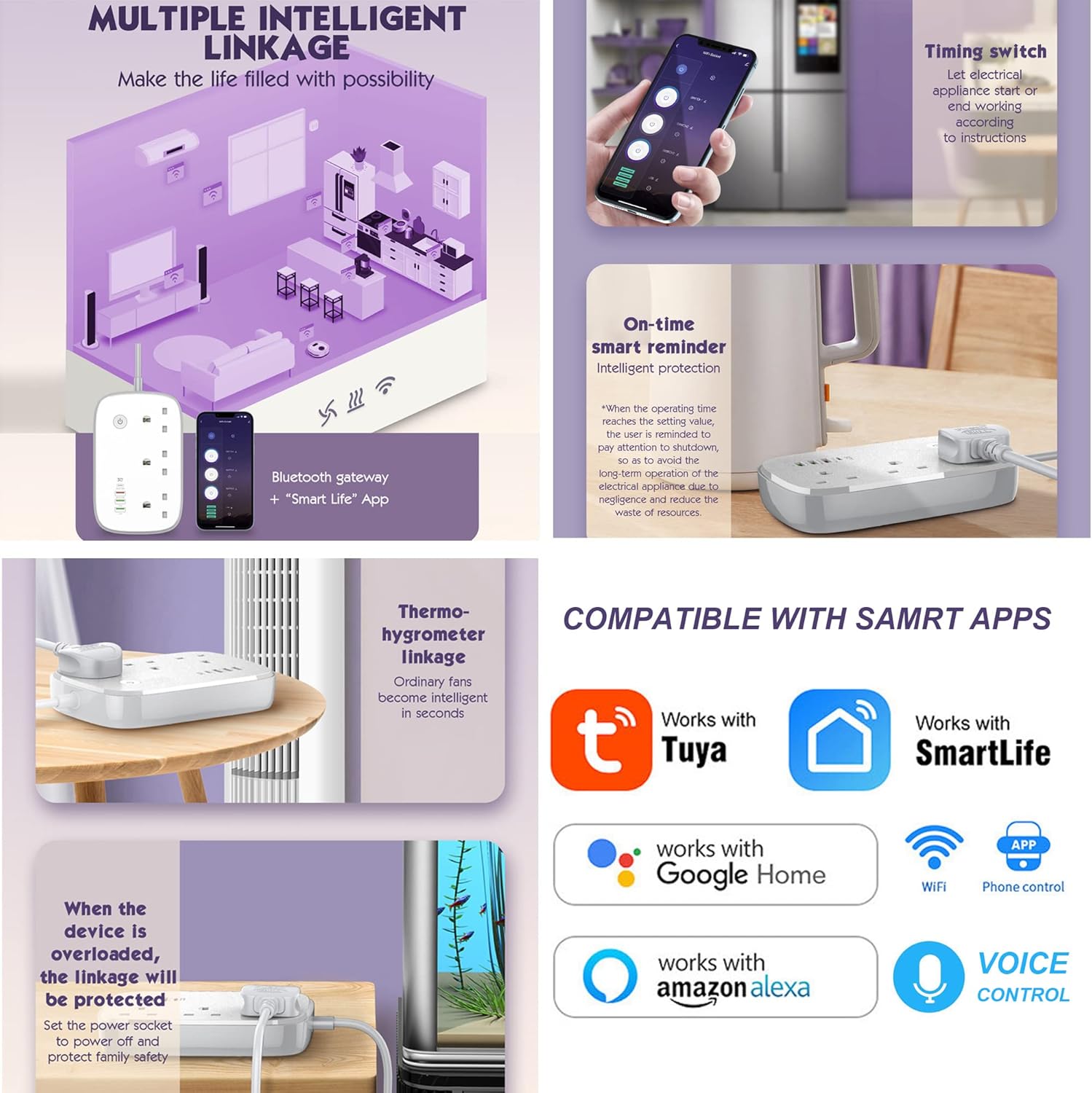 1 review for Smart WiFi Power Strip, WiFi Extension Lead with USB C Slots, Surge Proector, Voice Control, Compatible with Alexa Google Assistant App Remote Control, Timer Schedule, Extension Cord 2M(6.5FT)