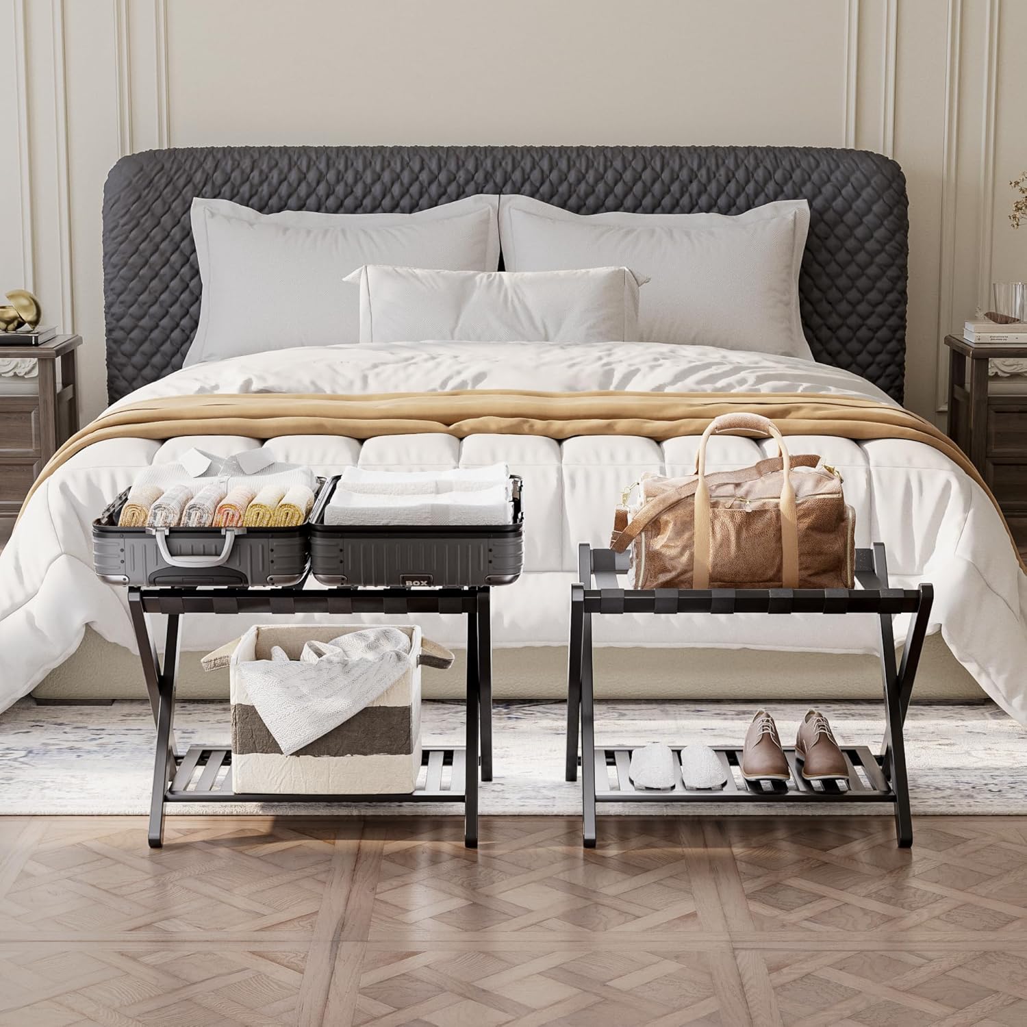 ★ LOWER SHELF FOR EXTRA STORAGE SPACE: This luggage rack features a 2-tier design. The convenient undershelf provides additional storage space and is perfect for storing shoes, slippers, bags and accessories