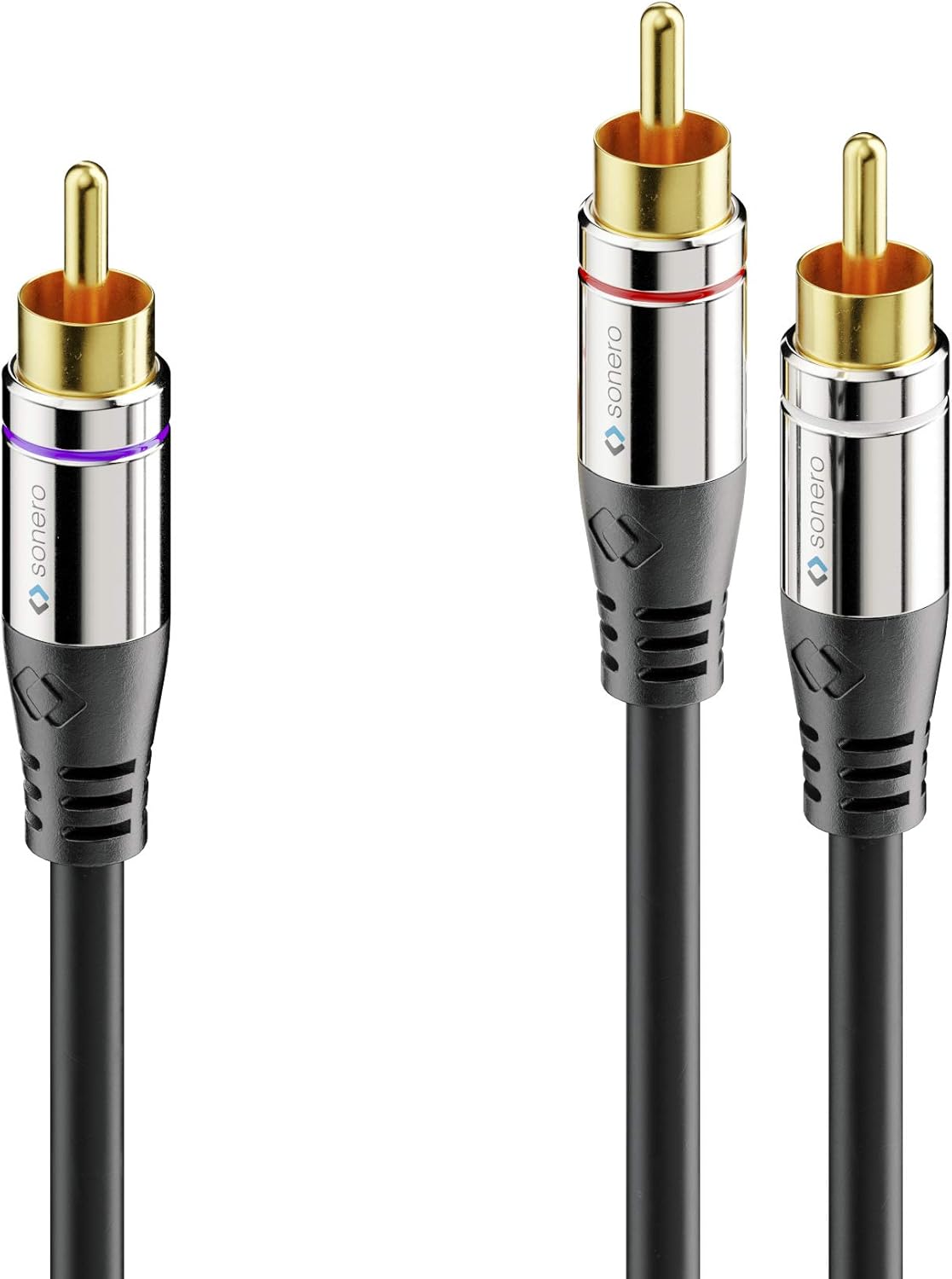 Universal Sonero Premium 1x RCA to 2x RCA Audio Y Cable – Ideal for connecting subwoofers, HiFi systems, home cinema systems and receivers.