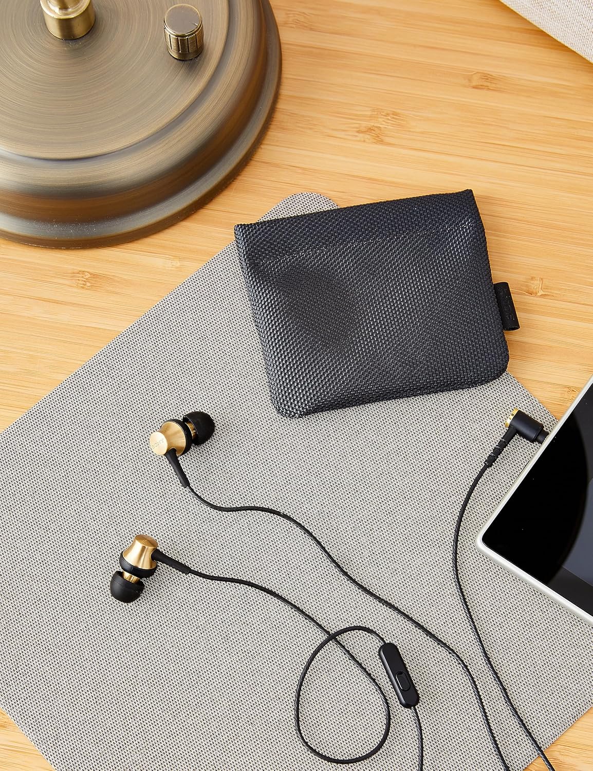 In-ear headphones with brass housing and in-line remote mic