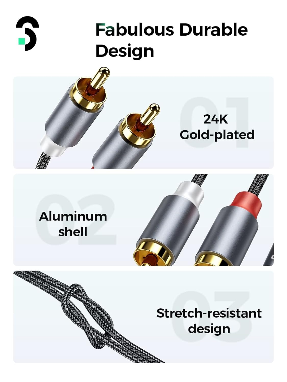 High Durability: The 3.5mm to RCA audio cable is made of highly durable braided nylon, which is both flexible and strong unlike the PVC material on the market.