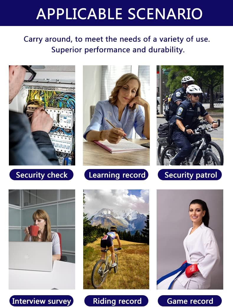 [Multifunctional Mini Camcorder] : The mini wearable body camera with clip can be used as a security gadget or a great gift for family or friends. Parents can use it as a nanny cam to watch their children; women can use it as a means of self-defense and avoid being harassed; students can use it to record and playback if they don’t want to miss a big class or a good lecture; travelers can use it to record beauty a flash of light; a court lawyer or police can use it to preserve important evidence.