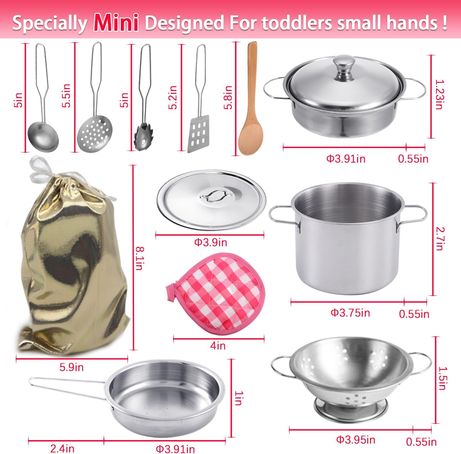 13 reviews for Stainless Steel Pretend Cooking Utensils Cookware Set,Mini Play Kitchen Accessories,Play Pots and Pans Toys Packed in a golden cloth bag for Kids Toddlers