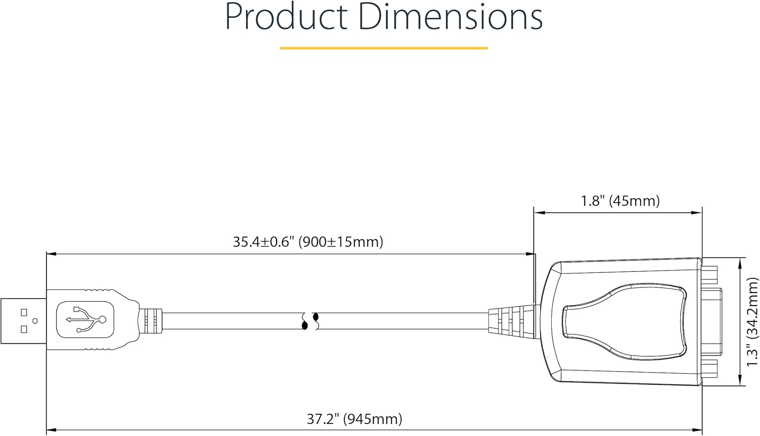 USB TO SERIAL ADAPTER SPECS: 3ft (91cm) Cable Length | Max Baud 921.6 Kbps | 512 Byte FIFO | COM Retention Between Reboots | Supports Windows, macOS, and Linux | Prolific PL2303 Chipset | Odd/Even/Mark/Space/None Parity Modes | 5/6/7/8 Data Bits