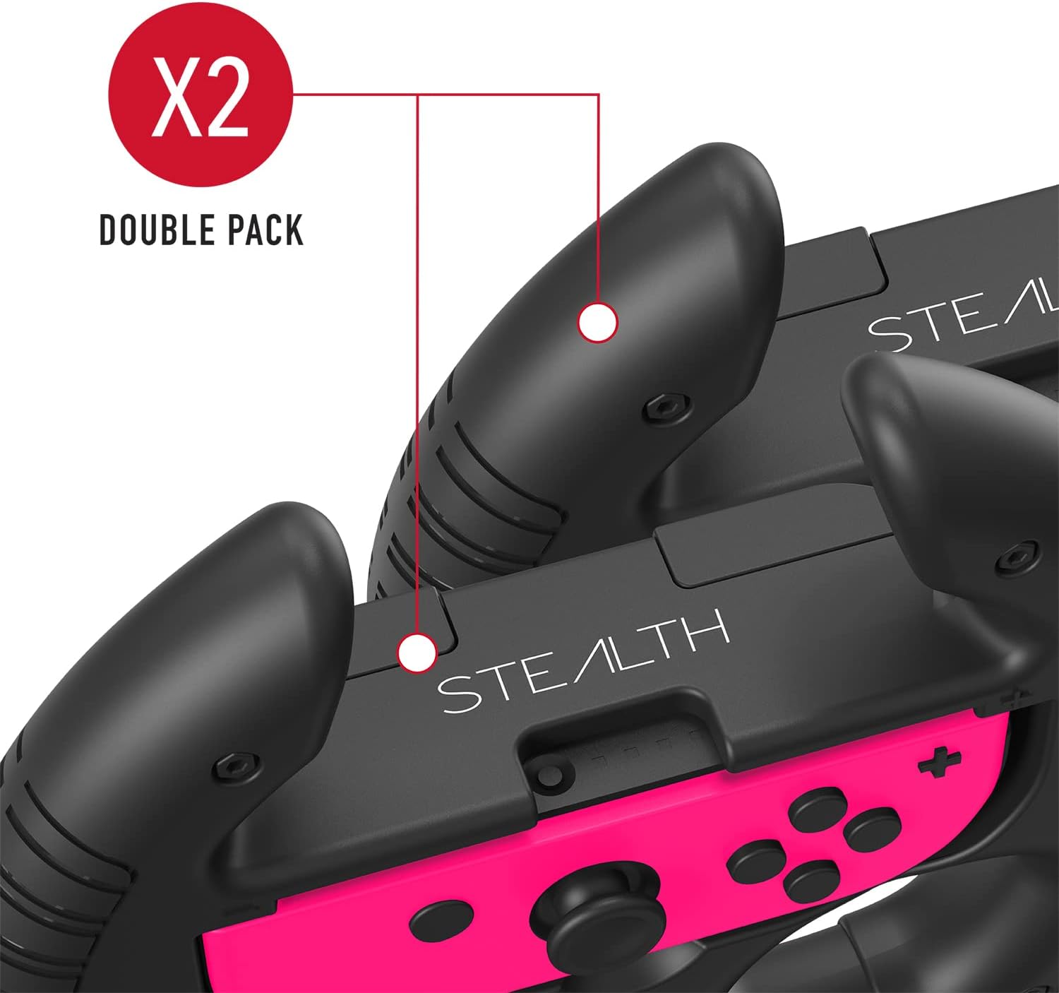 STEALTH Racing Wheels Compatible with Nintendo Switch Joy-Con Controllers – Black Twin Pack, with Analogue Stick Grips