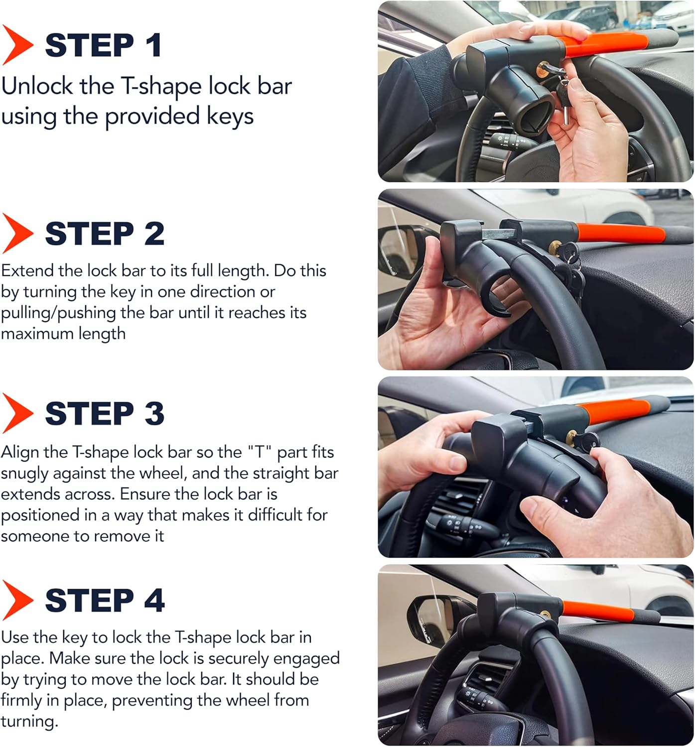 👀 VISIBLE DETERRENT FOR THIEVES: the bright and visible design of our car steering lock serves as a powerful deterrent. Potential thieves will think twice before attempting to steal a car equipped with our steering wheel lock, adding an extra layer of security to your vehicle.
