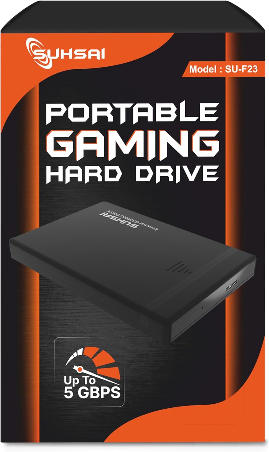 GAMING STORAGE: Play extreme gaming with portable external game drive and store more. More world to conquer, more world to explore and win, play more and delete less with all new Suhsai External Gaming Drive. Suitable with Linux, MAC, Windows, PC, Laptop, Gaming Consoles and More.