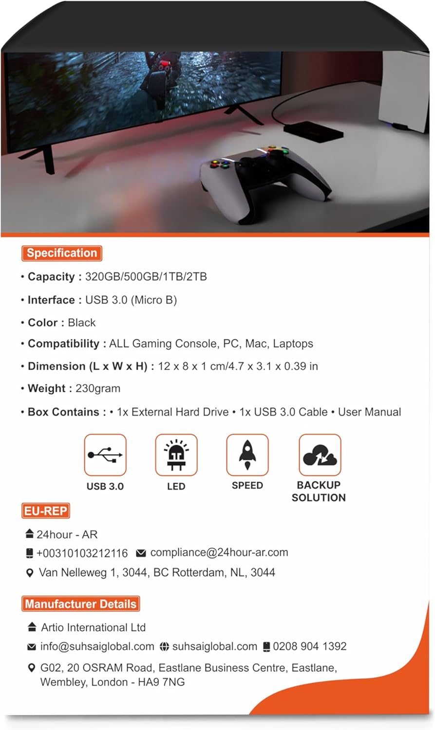 MULTIPLE USES GAMING DRIVE: These game drive can be used for data back up , multimedia storage device and more. External hard drives suitable for computer, laptop, MAC. Consoles and more.
