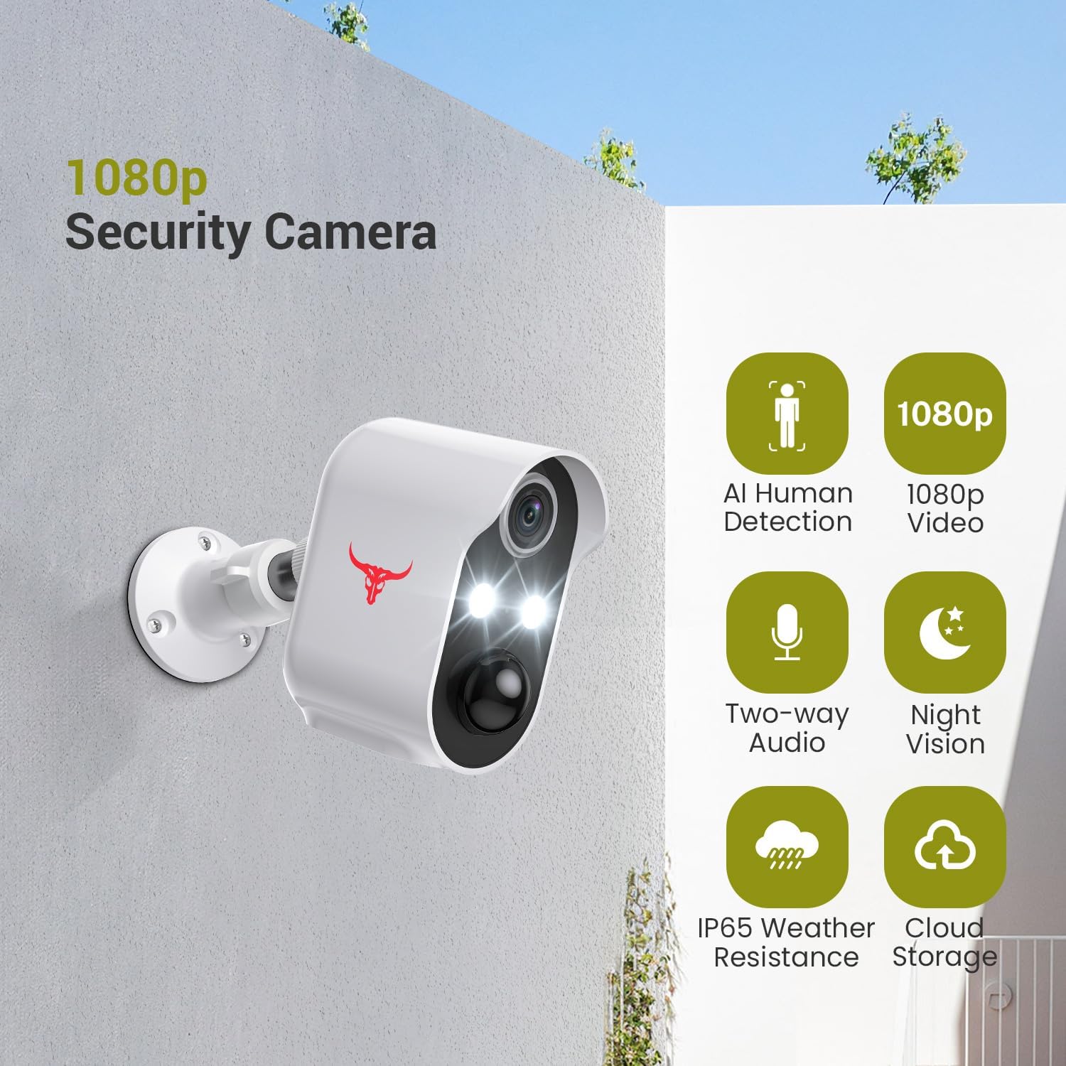 SUNNYJANE Security Cameras Wireless Outdoor, 1080P Battery Power WiFi Surveillance, Indoor Home Camera with 2-Way Audio, Smart AI Human Detection, Color Night Vision, Cloud Storage (2 spotlights)